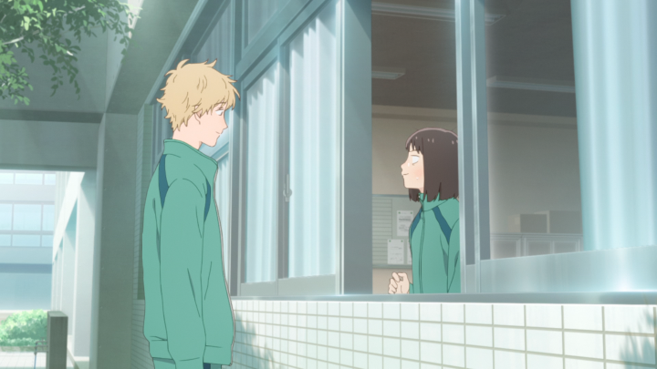 Starting out this episode, Mitsumi is confronted by Kanechika who is still hyper-focused on getting Shima to join the drama club. Personally, I would absolutely love it if he were to join, especially since it seems like club work isn’t necessarily the star of this show. After showing her a clip from an older TV show that demonstrated his acting ability, he sends her off to confront the ex-actor as a close friend. Unfortunately for Mitsumi, she’s incredibly hung up on all of this. It occupies her thoughts at the worst possible moment leading to an incomplete English quiz that then spirals into something worse, causing her to wander aimlessly around the school and eventually get smacked in the face with a volleyball. But hey! A free pass from P.E.! That’s always nice! But really, it lets us have a chance to confront Shima without any of the other classmates overhearing.