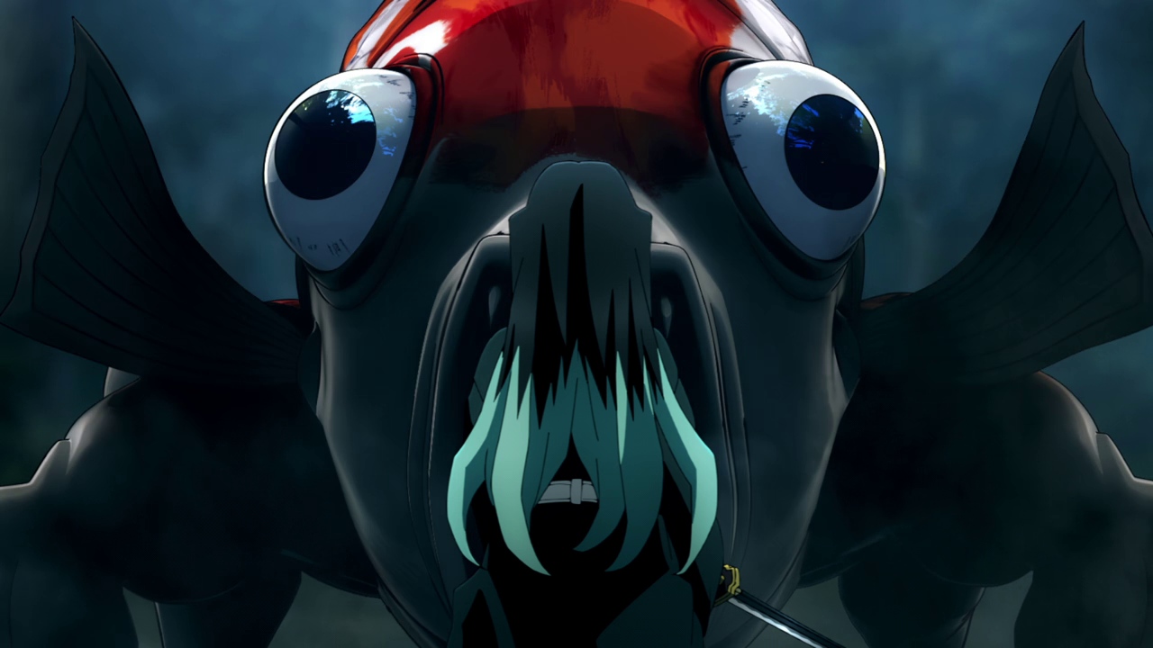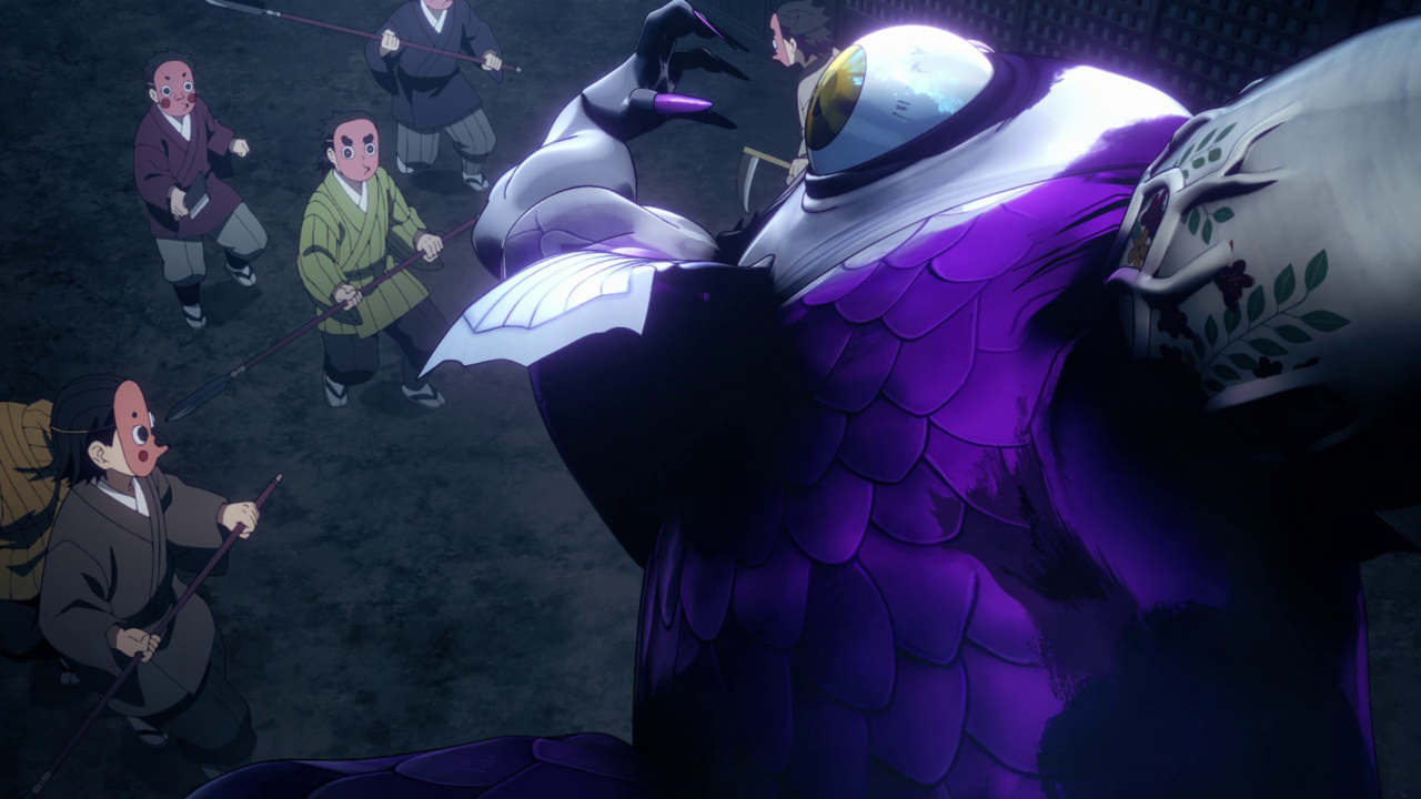 Just when things were starting to look alright, the Kamado siblings just get slammed to the ground and are knocked out. Which is REALLY BAD given the circumstances right now. When the village sounded the alarm, I totally thought that they were sending help there way… but no, they’re preoccupied by a freaking goldfish invasion thanks to the Upper Five. This village could really use at least a few demon slayers stationed here JUST IN CASE. I understand why they wouldn’t since the village has been hidden for over a hundred years, BUT STILL. I’m not sure how the Kamado siblings are going to get out of this mess. Either Genya makes a comeback or Mitsuri makes it in time to save them. Speaking of which, the entire time I was like: WHEN IS MITSURI COMING BACK??? Thank GOODNESS she’s heading back right now and she was already stationed nearby. But girl feels WAY too upbeat about going into a battle lol. We need a LITTLE more urgency here. Also Mitsuri’s crow is so freaking cute. I love the little headpiece she gave it and it’s voice is just adorable.