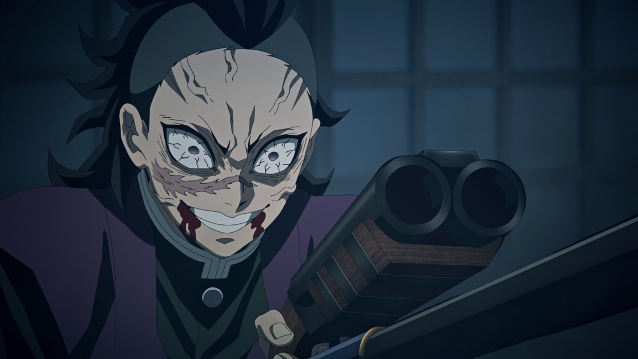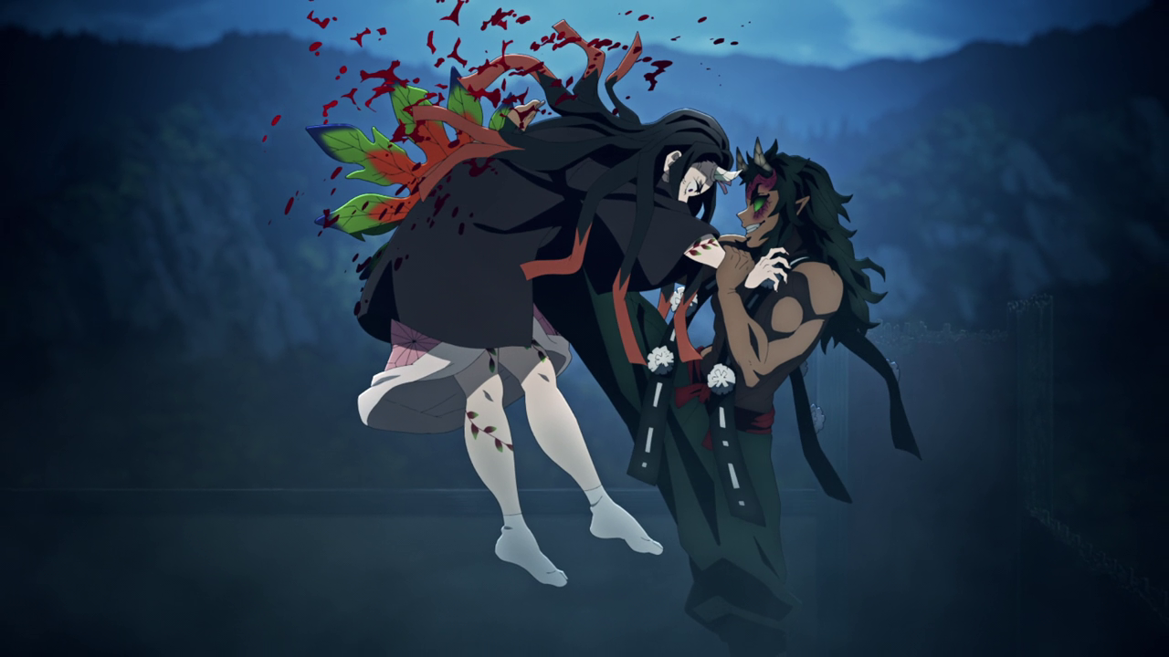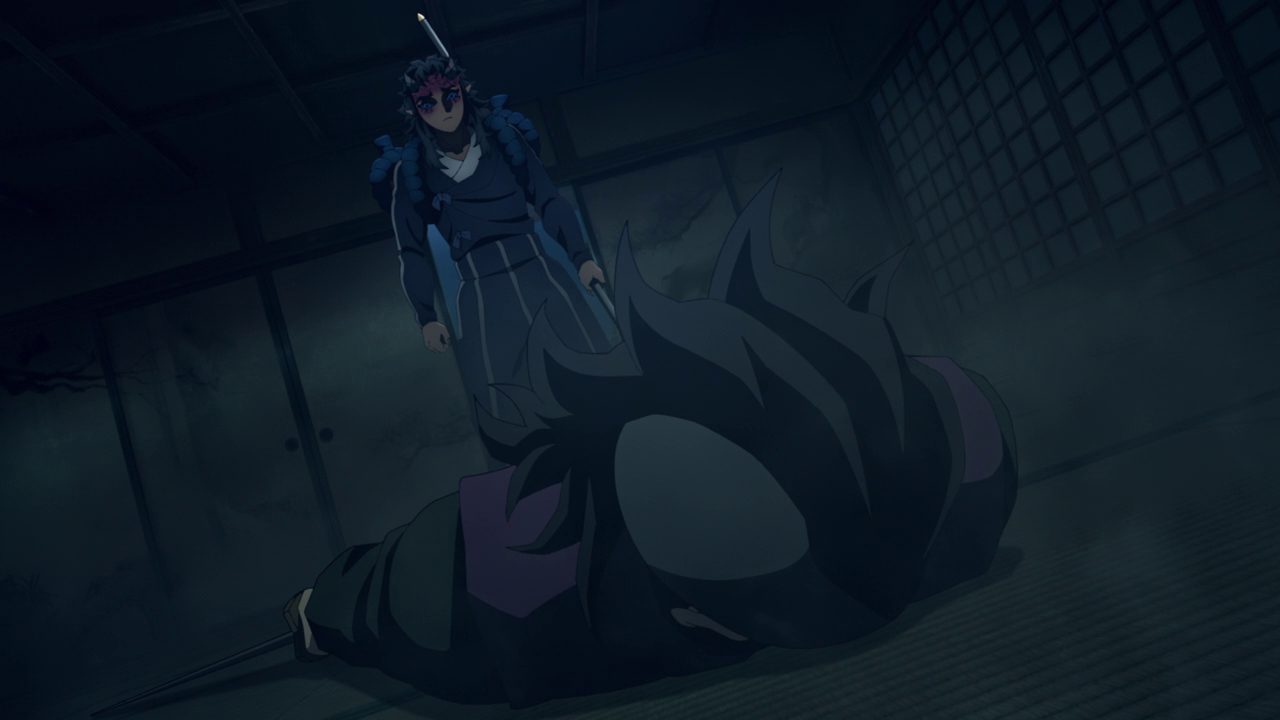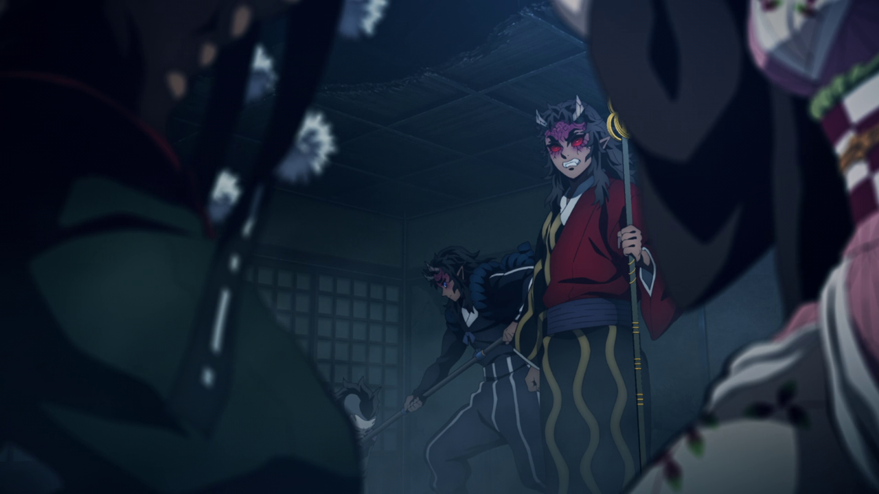I honestly really love the instances where Tanjiro is shown to be incredibly innovative and isn’t just powerful for the sake of being powerful. Even from episode one, we’ve seen how much of a quick thinker he is even in the heat of the moment. I love how you can even go back and see when he chops off Joy’s leg so he could use it to protect himself against Rage’s lightning. The fact he was able to catch that when Wrath and Pleasure first showed up and Wrath used his lightning on the entire field, but Pleasure was fine was great attention to detail. Though it was definitely risky, but thankfully it paid off in the end. Though I did find it odd that Tanjiro didn’t use any breathing techniques. It makes me wonder if it’s because this sword isn’t specifically tailored to him so it would be easier for him to break if he’s not careful, which is why he’s refraining from going all out in his fight with Joy. It would make sense since he ended up nicking his sword early on when fighting with Daki in the previous season.
