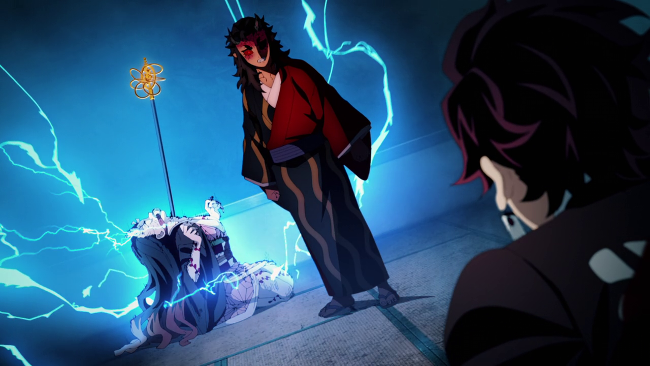 But Holy crap. Was it just me or are these fights getting more and more gruesome? I literally gagged when Nezuko got stabbed in the neck and the fish regenerating its head was just all kinds of gross for me. I can take a certain amount of gore, but even I had to glance a way a few times during his episode with all of the limb and neck ripping. Also the visual and thought of Wrath’s staff just lodged through Nezuko’s body while being electrocuted made me shudder. I can’t even imagine the sort of pain Nezuko must have been in during that whole thing. We don’t even know how long she was like that too.