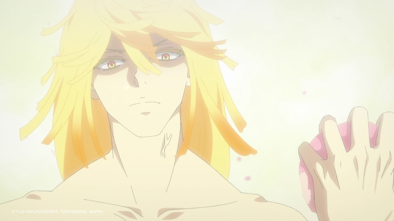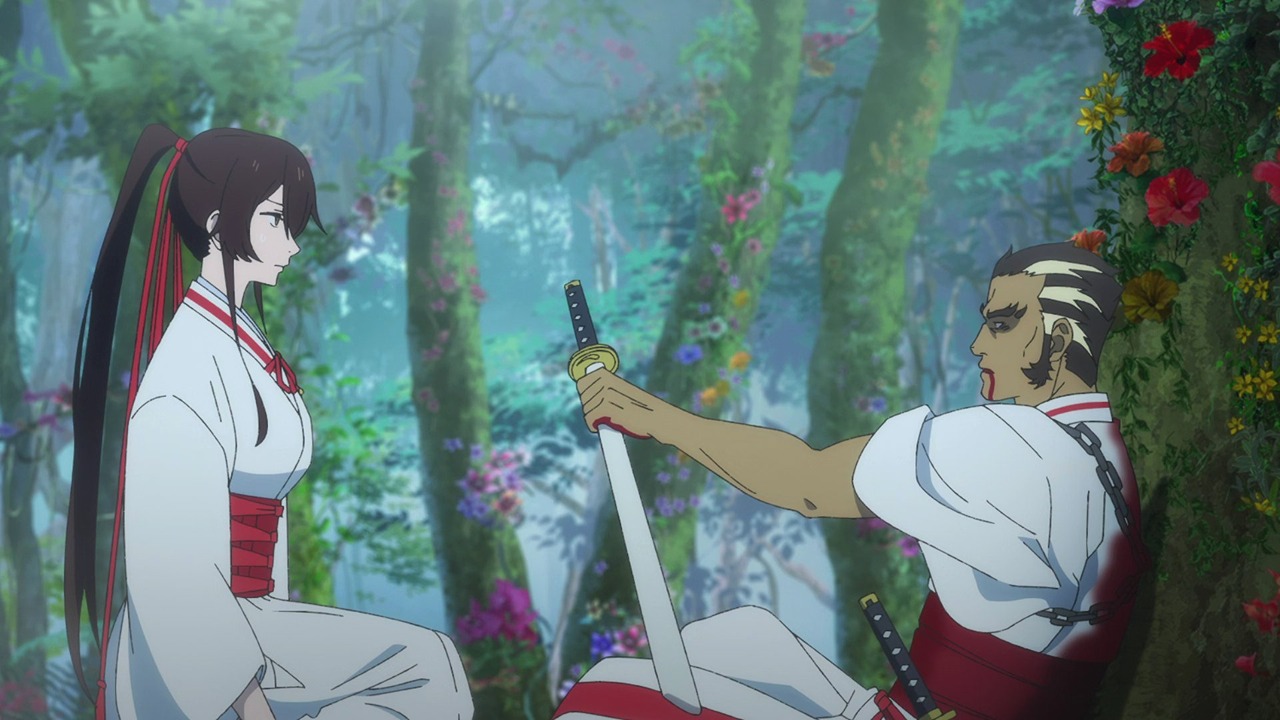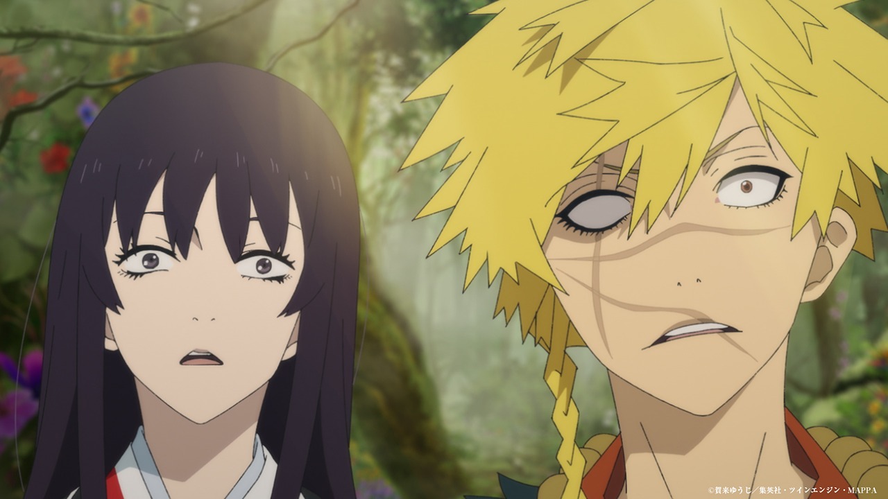 We are finally introduced to two of the seven antagonists in Hell’s Paradise, Ju Fa and Tao Fa…who were far too comfortable having sex out in the open. But since nobody has been on the island other than them, I understand if they think there’ll be nobody who’ll interrupt their intimate moment. And when some trespassers (Chobe and Toma) interrupted, Ju Fa was not pleased. I still remembered how shocked I was the moment when Ju Fa just changed from a woman to a man. The anime made it even more surprising because their voice also changed from soft and seductive to Jun’ichi Suwabe’s gruff (and attractive) tone! Considering how beautiful they are, I thought it’s possible for them to be voiced by female VA, both for female and male. But perhaps having two VAs voiced them was a deliberate choice, to emphasis how the characters are capable of changing their genders at will.