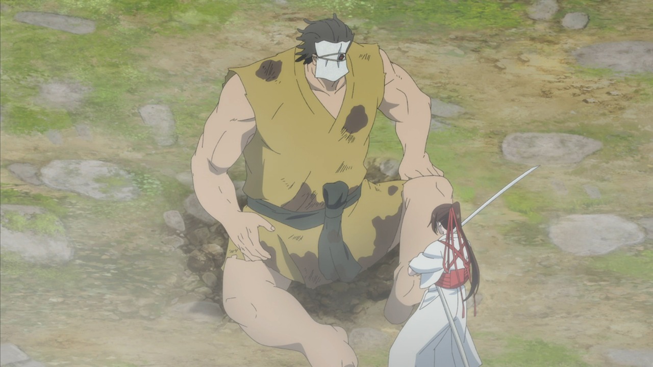 Gabimaru and Sagiri’s teamwork has improved so much within a short time span. If in the previous episode they were more being forced to work together due to the direness of the situation, in this episode, Gabimaru and Sagiri both made it clear that they need each other’s help in defeating Rokurota. Both acknowledged there’s nothing much they could do all by themselves against Rokurota and it wasn’t a fight they could win alone but a fight they could win by fighting together.