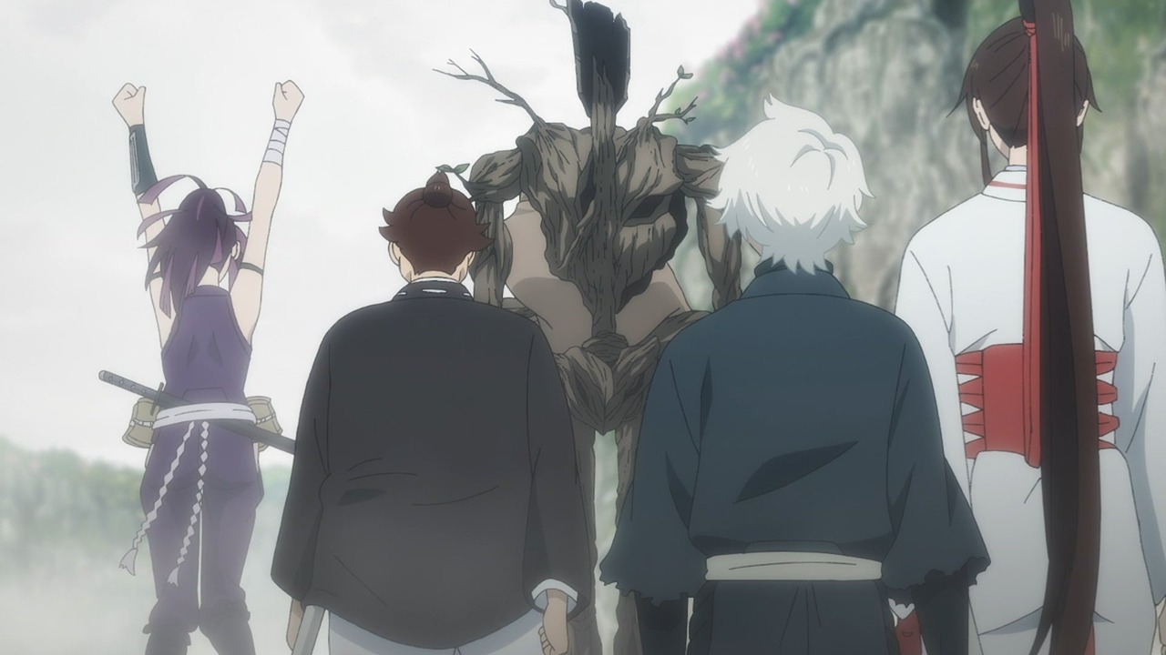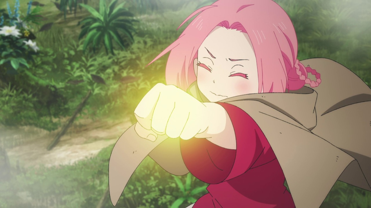 Speaking of being different, we were also introduced to a cute little girl with a wooden-like being as her guardian. Again, looks can be deceiving. The little girl was not only athletic but also able to use a mysterious power that threw off Gabimaru despite her small size. Seeing how Gabimaru recalled Sagiri’s move when the girl attacked, it could be assumed that Sagiri most likely also used the same power without herself realizing. The wooden-like being, despite his look, was actually friendly if you just stay calm and talk things over. Although, I have to say that I was rather disappointed that I didn’t get to see Yuzuriha’s ninja technique yet.