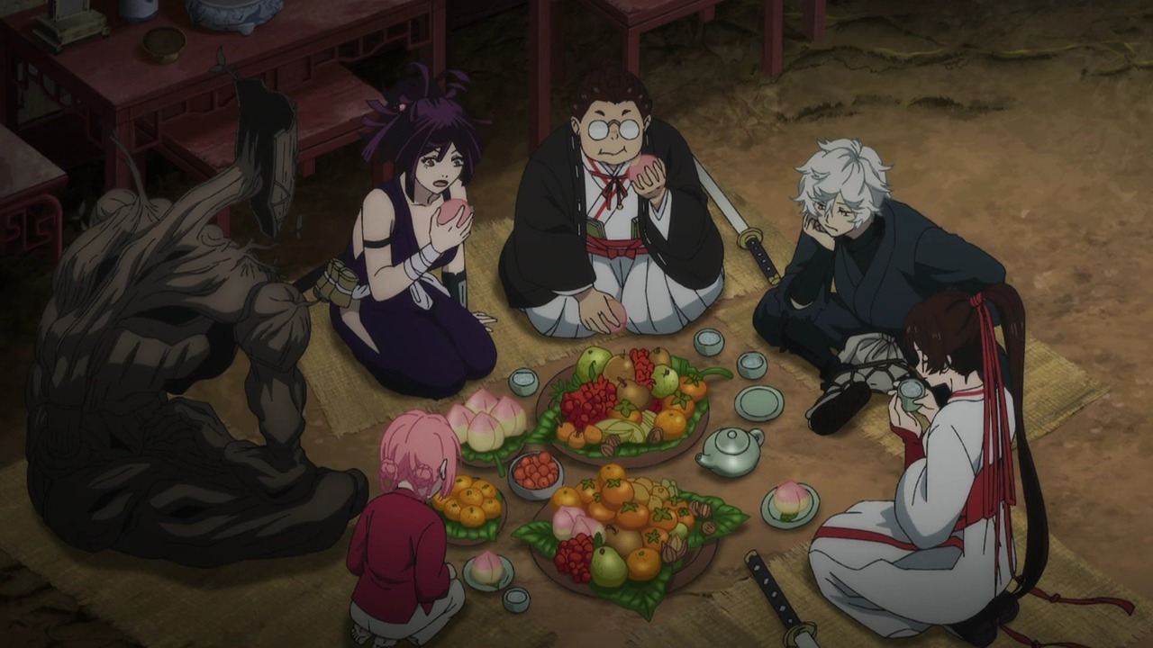 There’s not much happened in this episode because it was more about information regarding the island and Elixir of Life. The island was divided into three regions: the shore and forest is called “Eishu”, the village is in “Hojo”, and the elixir “Tan” is located in the central region of mists called “Horai” which is inhabited by the Tensen, the immortal beings like Ju Fa and Tao Fa. While Gabimaru and the others have yet to meet Tensen like the Aza brothers, knowing this information gave Gabimaru hope that he could return to his wife’s side. Aside from this newfound information, the rest of the episode simply showed the girls and Gabimaru relaxing themselves by taking a bath.