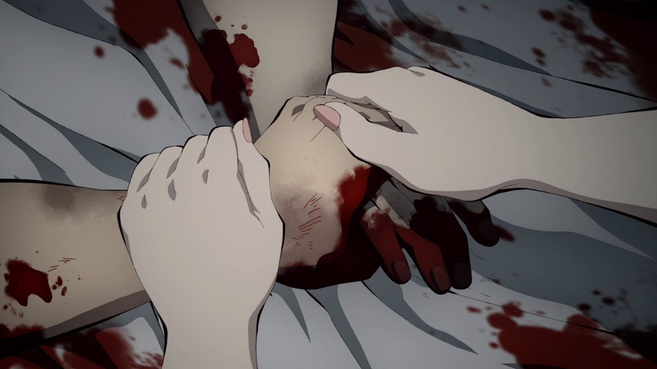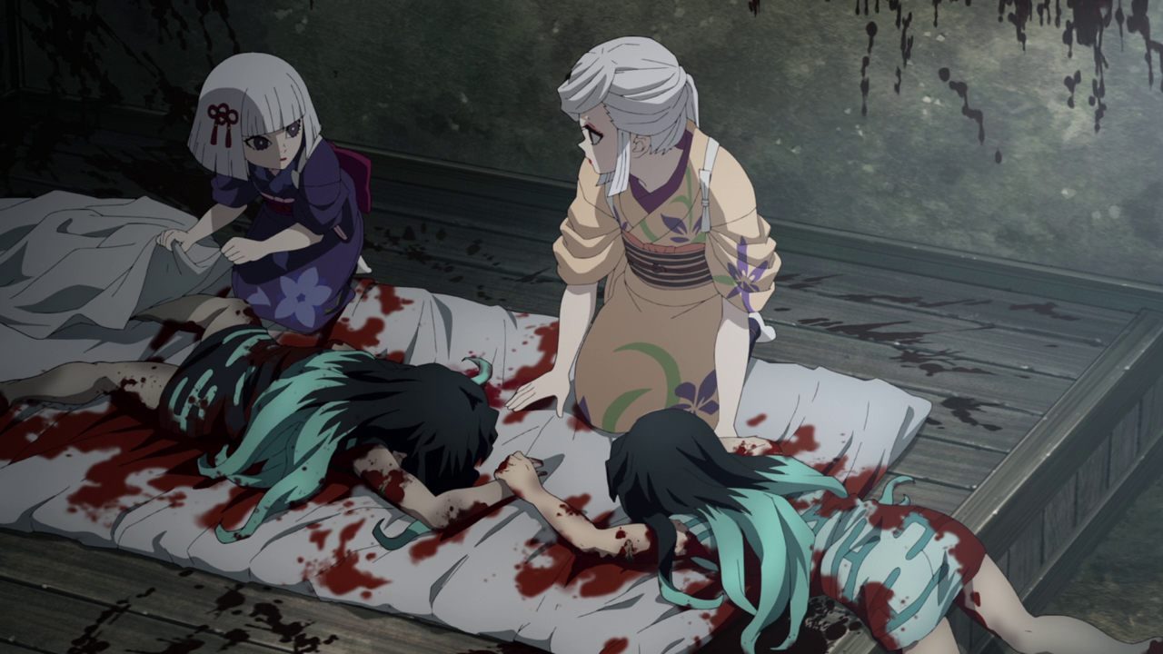 I also liked seeing the Master’s family come to Muichiro’s rescue. Especially since we actually got to see them emote, which is something that doesn’t happen too often. And while the scenes were short, I do like that we get to see a little more of the Master’s wife and how much she cares about others and how quick she is to get things done. They were such little characterization moments, but I enjoyed them none the less. But holy crap I had to look away at the scenes showing the maggots wriggling… that was beyond disgusting.