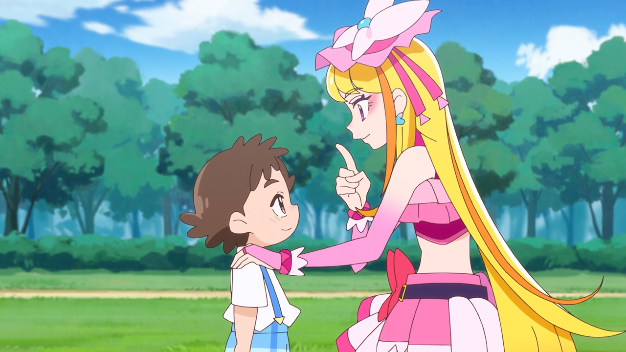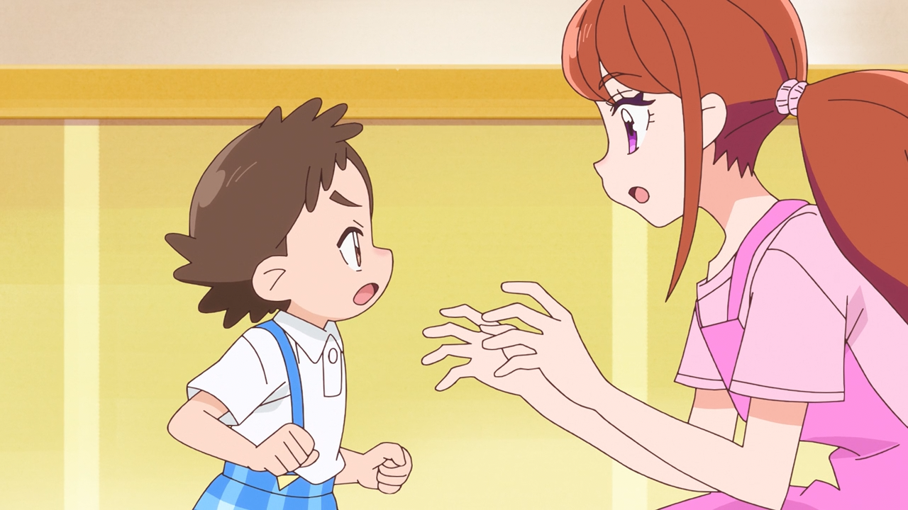Aside from that, I have to laugh at the bit when Tsubasa was going on about how they need to keep their identities a secret. I mean, hate to break it to you, but Sora already blew her cover in first episode. Honestly more surprised that it wasn’t been brought up more often, even though they are clearly trying to feign ignorance and pretend it’s not the case. Nevertheless, Ageha is the next one in the party to sort of reveal herself when she rescued one of the nursery kids who was a huge fan of Tsubasa, and now is equally a fan of her after seeing her become a Precure right before his very eyes. (Well isn’t he a lucky fan?)