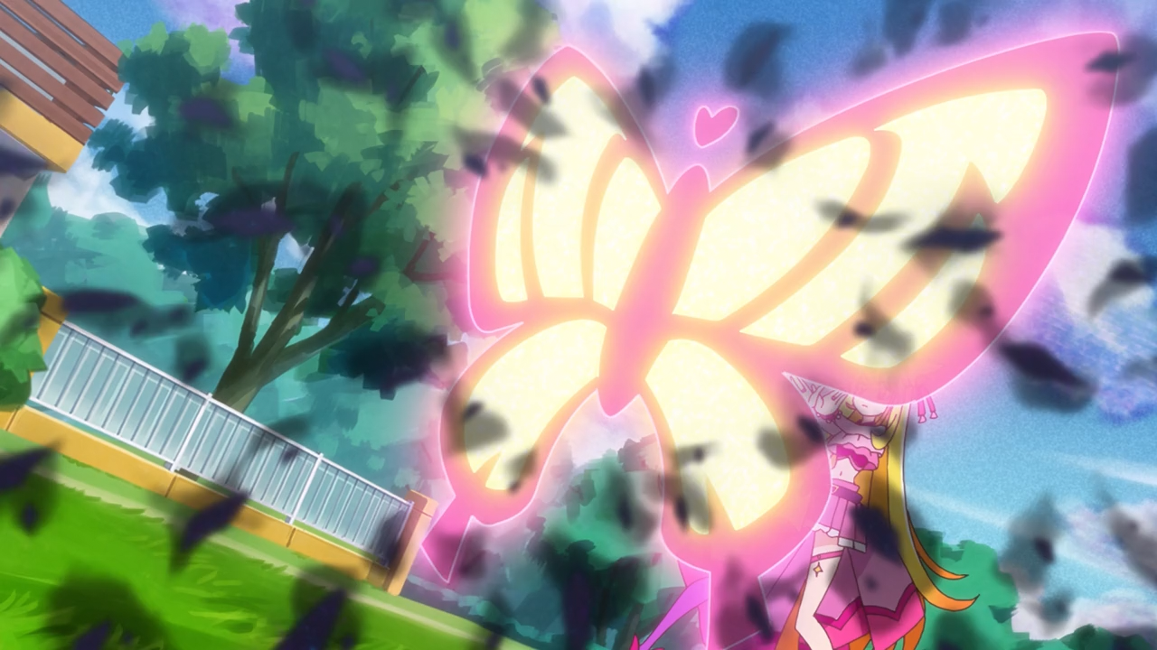 It was also was rather entertaining to see the way Ageha bruise Battamonda’s ego, and the way she snaps back at him with that fierce glares of hers (like seriously, don’t mess with her haha). The only thing I am a bit concerned about is the way they kind of shoehorned this “Exciting!”, which… I noticed they were kind of setting up from the beginning of the episode with the way Sora and Mashiro were almost very animated during her visit, in-fact you could say they were dancing. It seemed a bit much compared to the previous visits. And sure enough, after she became a precure, they all started doing this butterfly pose thing, and I noticed they had established a catch phrase/motto (whatever you’re supposed to call it) for her. At that… I sucked in a breath because I knew what was about to unfold.