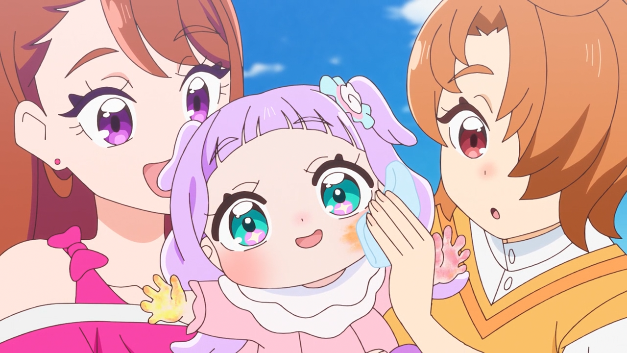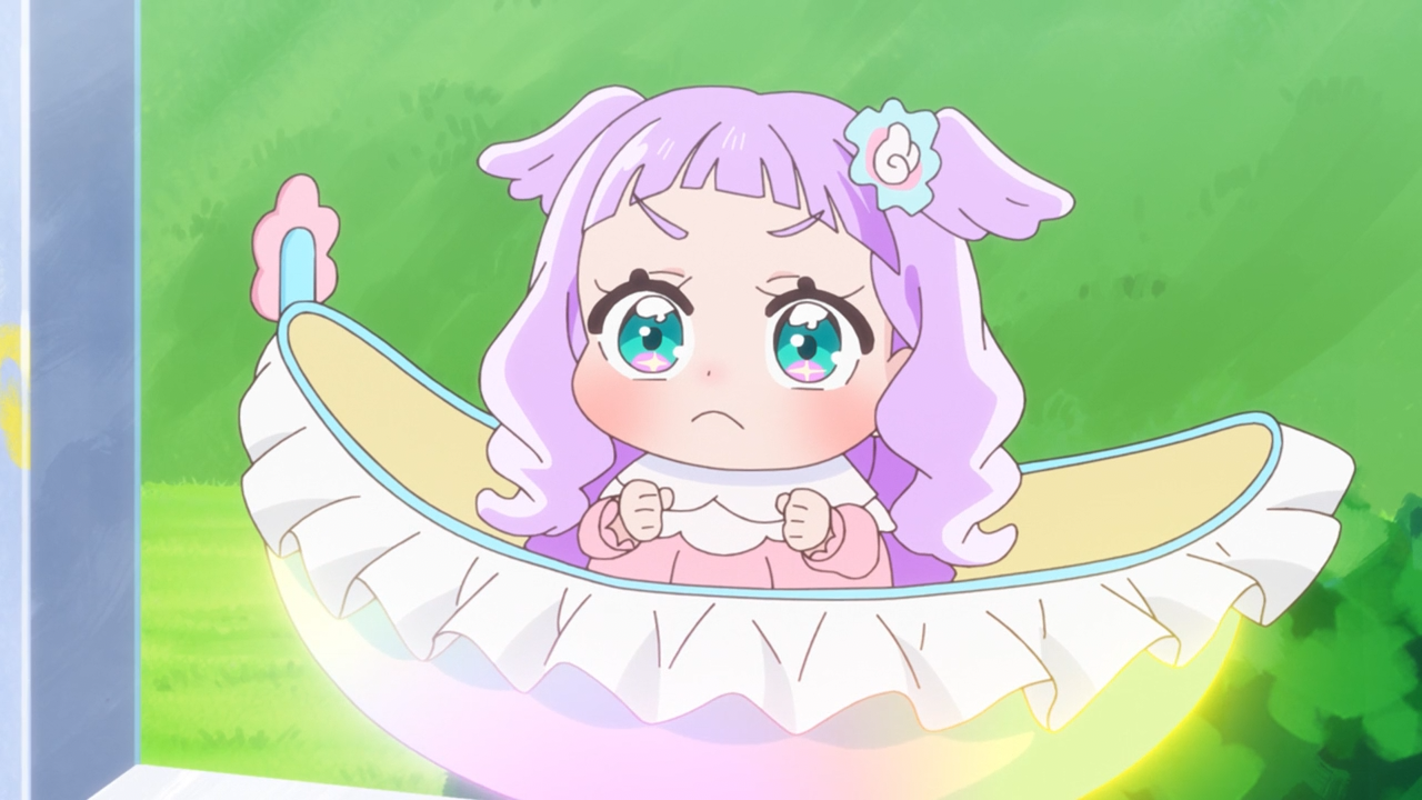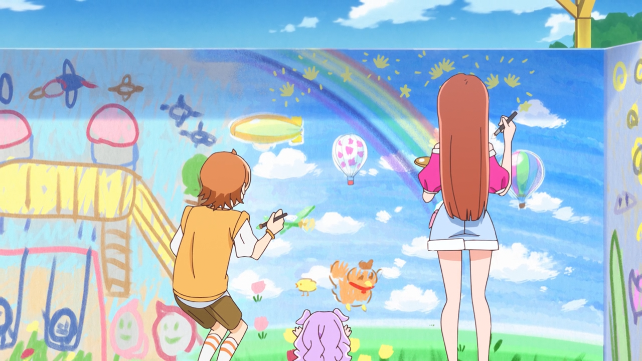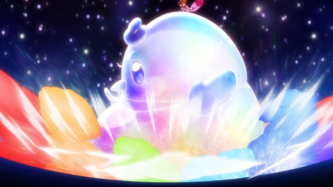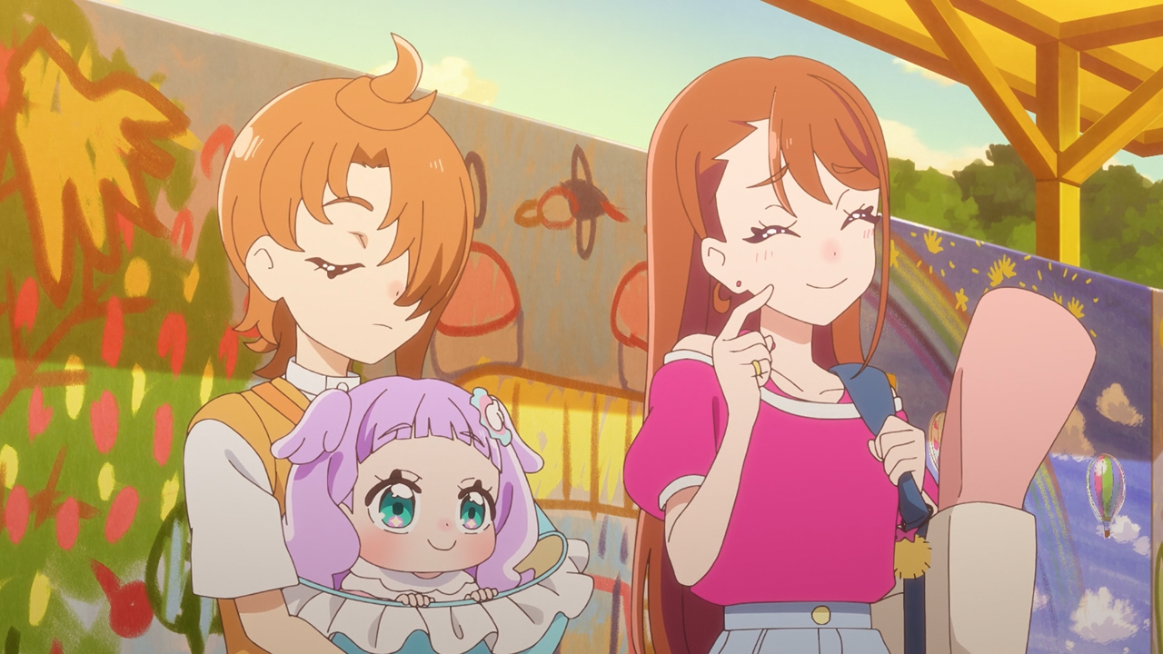 Apart from those gripes, overall I did enjoy the episode a lot, to the point it was enough to persuade me to continue my coverage. I thought it was really funny, but also probably the most realist moment we’ve ever had in precure where they are handed a brand new power tool and their first reaction is, ‘What on earth is this thing?‘ and ‘Wait how do we even use it?!’ and then they ultimately wing it– which was probably the joke itself. And hands down, the Paint Palette is way cooler than the whole UFO disc thing that Mashiro and Sora got going with their duo special attack. The way Tsubasa transforms into such a majestic and badass bird for Ageha to ride– and then freaking poofs into a giant chonky version of his original bird form was FREAKING HILARIOUS. I understand why he’d be embarrassed about it though, and it makes sense why he was a bit disappointed that he couldn’t maintain his majestic form till the very end of the attack. Perhaps down the line they’ll keep it that way from start to finish, that would be a bit more fitting for a finale power-up.