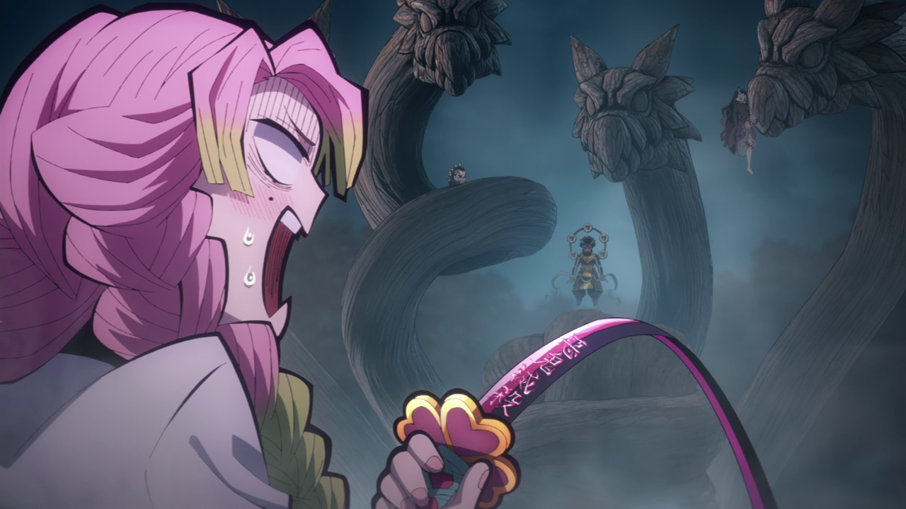 And then the freaking audacity of that cliffhanger. Demon Slayer is notorious for their absolutely terrible cliffhangers, but GOSH. This one was just obnoxious. You really gonna leave me THERE??? Anyways, I definitely enjoyed this episode a lot more with this episode than the previous one. Maybe because it feels like there’s more stakes in regards to this fight and there was a lot more fighting than talking. We got more of Mitsuri and her backstory and while I can see someone say that it’s boring, I still ended up really liking Mitsuri as a character and that you don’t need a tragic backstory to be an interesting character. I’m still a bit bummed that this was basically the only time we’ll get a Mitsuri focused episode for this season despite her being marketed as sharing the spotlight with Muichiro and he got several episodes dedicated to him. In any case, the next episode will be a special hour long episode for the finale. Hopefully this series goes out with a bang even if I still think this arc wasn’t as well executed as the Entertainment District arc.