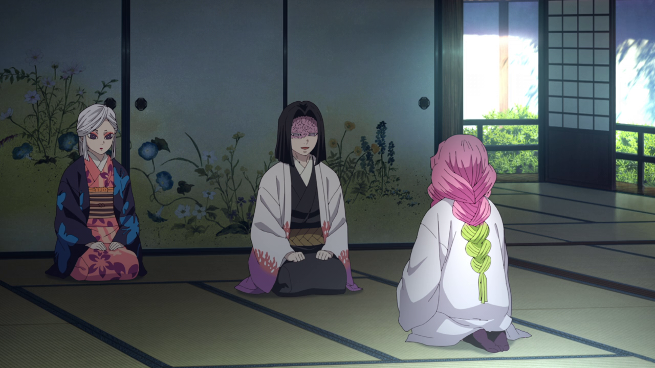 Because of this external pressure, Mitsuri feels as if she isn’t allowed to be herself and nearly loses herself. She wants to be loved by others for who she is, not by society’s standards. Thankfully she finds a place to fit in with the Demon Slayer Corp. Especially since literally all of the Hashiras are all kinds of weird in their own right. So she fits right in with the oddness of each individual. It was also really sweet to see the master uplift all the qualities she thought were troublesome. Essentially going against what so many people have told her and giving her a place to belong. Though that does raise the question on HOW she ended up finding out about the Demon Slayer Corp to begin with since demons are not widely known. I think it’s also worth noting how the Master is always portrayed in such a supportive manner, especially in the cases of the Hashira. It shows a drastic difference in leadership between him and Muzan. While Muzan CONSTANTLY tears his upper ranks down and calls them worthless like 99% of the time, the Master is always uplifting and never once talks down to the Hashiras and always encourages them. The Twelve Upper Moons fear Muzan, while the Hashira all respect the Master.