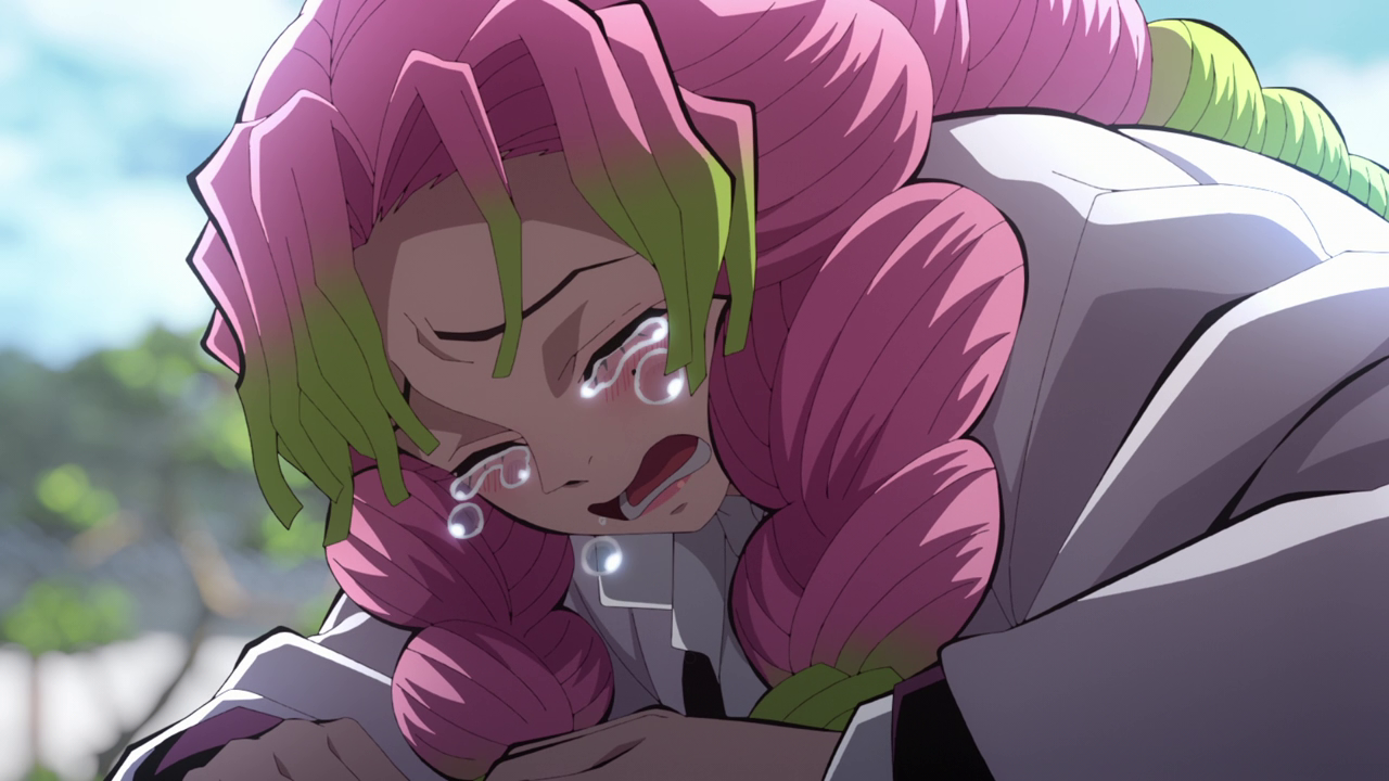 Compared to last episode, I definitely felt more engaged with this one. The pacing still was a bit weird, especially when they had the need to throw ANOTHER freaking flashback right in the middle of Mitsuri about to get punched. Once or twice happening in the season, FINE, but three times? That feels a bit much. Anyways, it was nice to get to know Mitsuri a bit more despite it being quite late in the season. Better late than never I suppose. And while I wouldn’t put her on Rengoku or Tengen level of liking, I do like and appreciate her. Maybe even a smidge above Muichiro. Mitsuri is just so fun and bubbly. She’s like a breath of fresh air in this depressing world. Especially when it comes to her backstory, but I’ll get to that later.