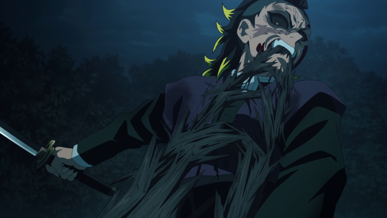 It’s honestly amusing how angry Tanjiro gets when demons try to run away from the fight. He got SUPER mad at both Muzan and Akaza when they tried to slip away from the situation. And now he’s yelling angrily at Hantengu about running away from his responsibilities. Though given the context that he’s basically just yelling at him to not run and let him kill him is comical in a sense. Also at this point, I too am just really annoyed with Hantengu and his victim mindset. He keeps going on about how he’s a coward and how no one has shown him sympathy, but he’s STILL killed hundreds if not thousands of people over the couple hundred years he’s been alive. So I don’t think he deserves any sympathy in that regard. We also don’t know if Hantengu is genuine about not lying once in his life since demons tend to be unreliable narrators. So hopefully we do get to see a little more about Hantengu’s past since I feel like we were given just a small taste of it. Genya also seems super done with him as he just chucks a random tree at him lol.