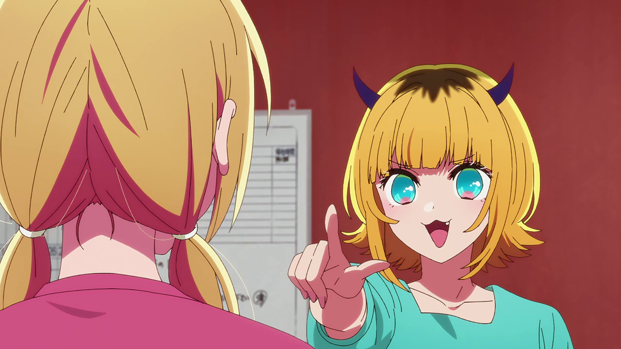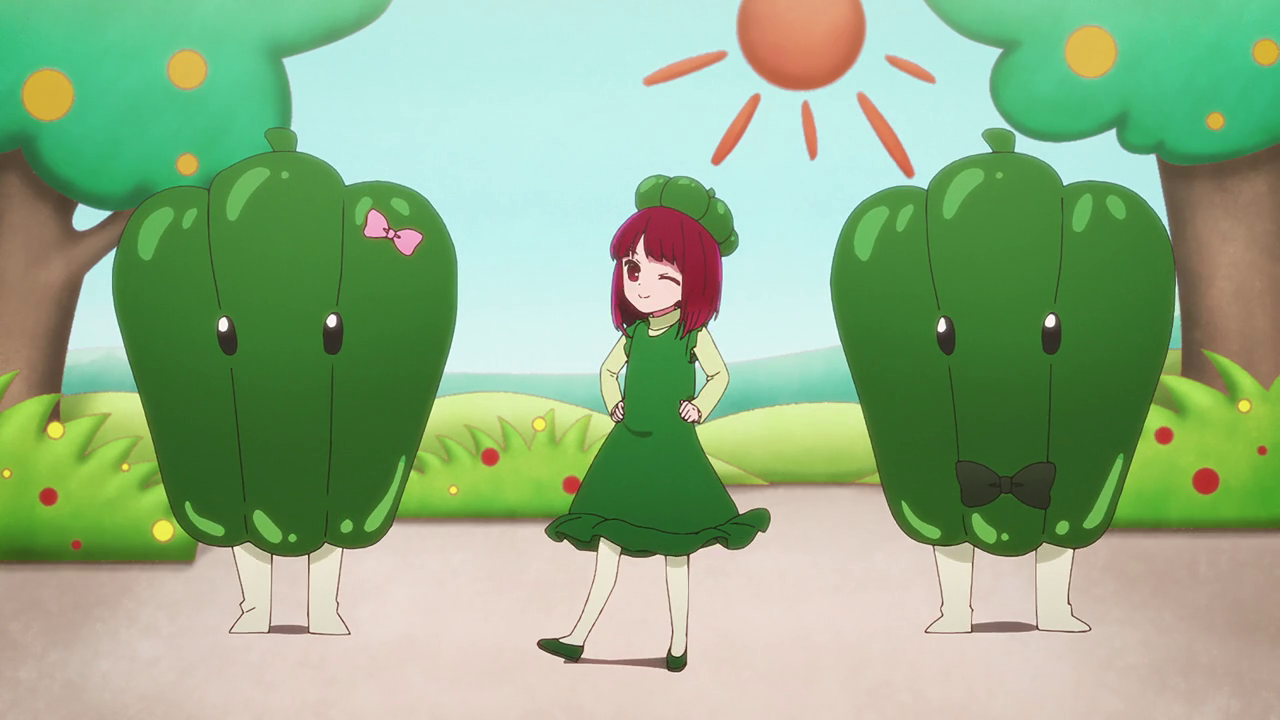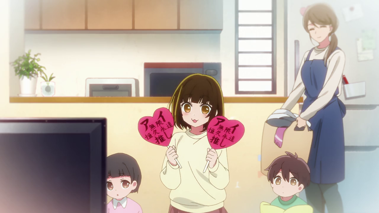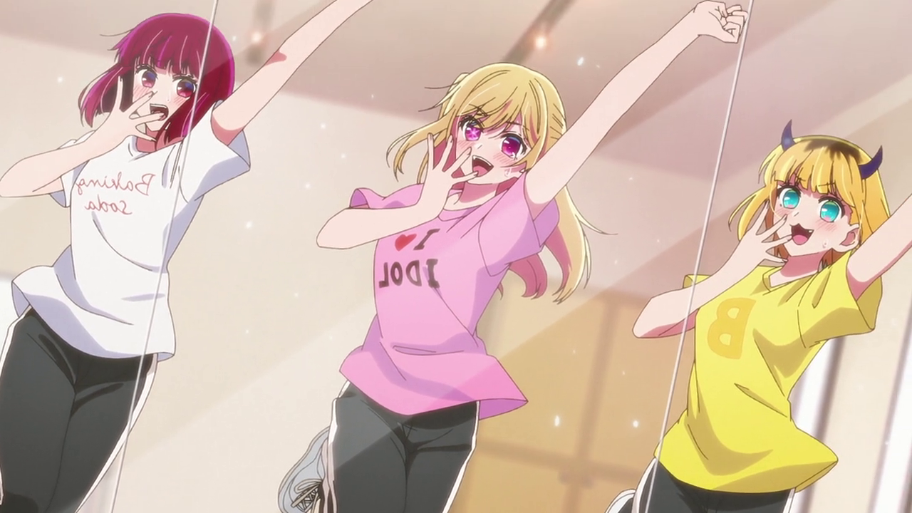 Despite the age discrepancy, they probably hit the jackpot with MEM-cho as a new member due to her being already a pretty big online influence. Not to mention I think her personality is a nice addition to the group. Not only that, but I think I really started respecting MEM-cho as a character after seeing her backstory about how hard she worked to send her siblings to college despite it costing her own career. She’s self-sacrificing, but not to a destructive amount. She was able to find a career she could work with and enjoy. So while she wasn’t able to become an idol like she wanted at the time, she was still able to essentially roll with the punches. And despite not being at the typical idol age, she was given a new chance to follow the career she had thought was just a dream. Which I’m really happy for her. Especially since I noticed that an ongoing theme in this series is giving characters “another chance” in one form or another. In MEM-cho’s case, it is to become an idol. To which both Ruby and Kana are happy to have her part of the team.