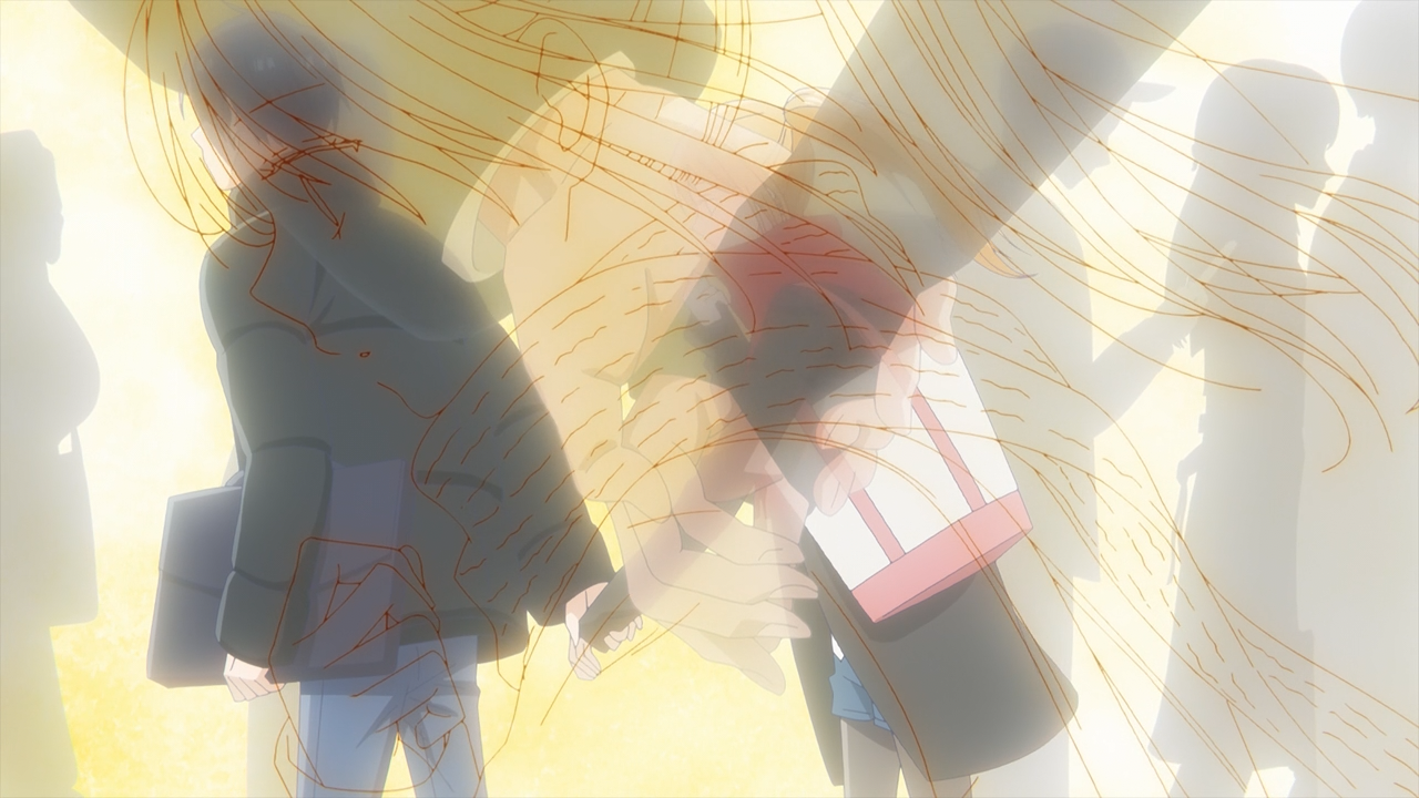 But in compensation of those interruptions, we did get some real sweet and squee-worthy moments with the way Yamada was being very attentive towards Akane. When he noticed she was totally out of it, he held hands with her to make sure she didn’t walk into traffic, or stray behind. And even though he was in a hurry to catch the train, he still turned around to organize time for them afterwards to make time to talk after class. God I really loved that moment, the freaking pivot and then how much that cheered Akane up and his smile after that- MY HEART! God, that was such sweet little moment between them. I freaking love little dabbles of fluff like that.