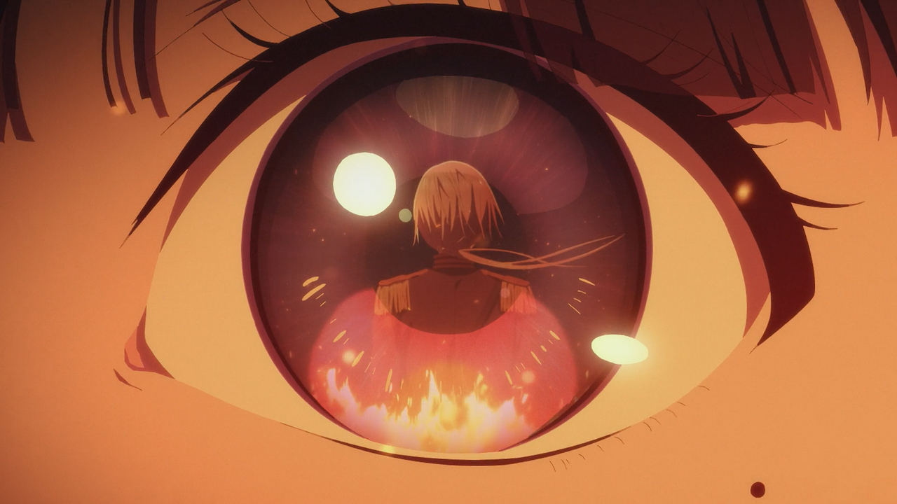 Apart from leaving that bit out, the way they delivered the rest of Miyo’s tragic backstory was more so in a manner of ‘show not tell’, which was fine as it’s generally better this way. The best example was at the very beginning of the episode, where we see Miyo under the blooming cherry blossom tree. I just loved every bit of detail they poured into that scene, because it was absolutely spectacular to watch. Did anyone else catch that little detail of the little petal fluttering down as though as tear rolling down her face, and then dropping into her hand and then burst on fire, [chef kiss] – I FREAKING LOVED THAT! Then the transition to the burning cherry blossom tree and then her home– GENIUS! As a novel reader, there were so many details in that scene that was summarized! Miyo lost everything, her place in the family, her mother’s mementos and her happiness. Everything was taken from her, and cruelly so.