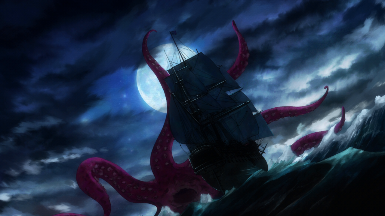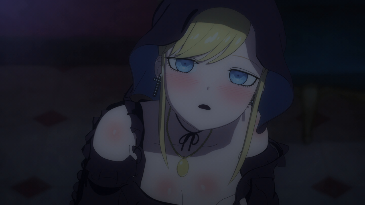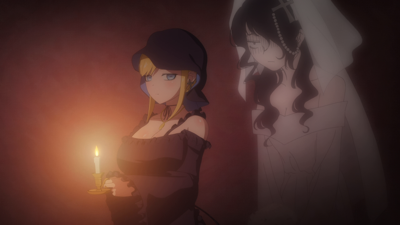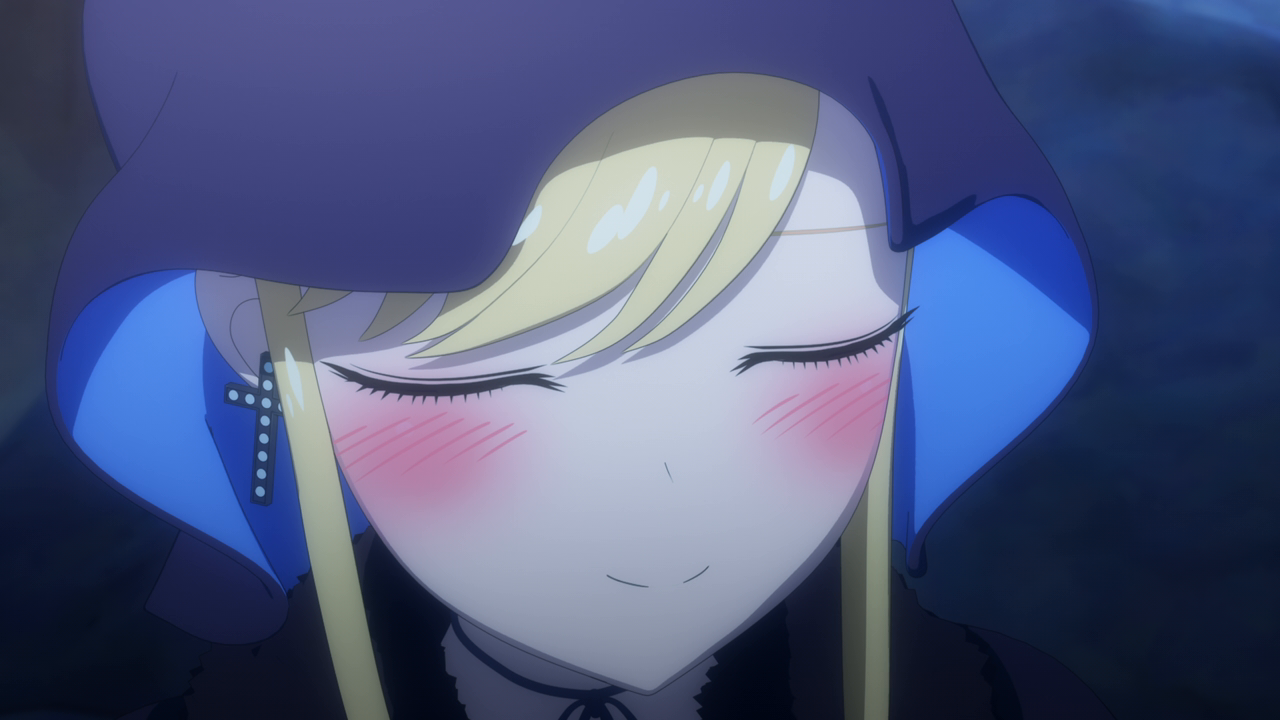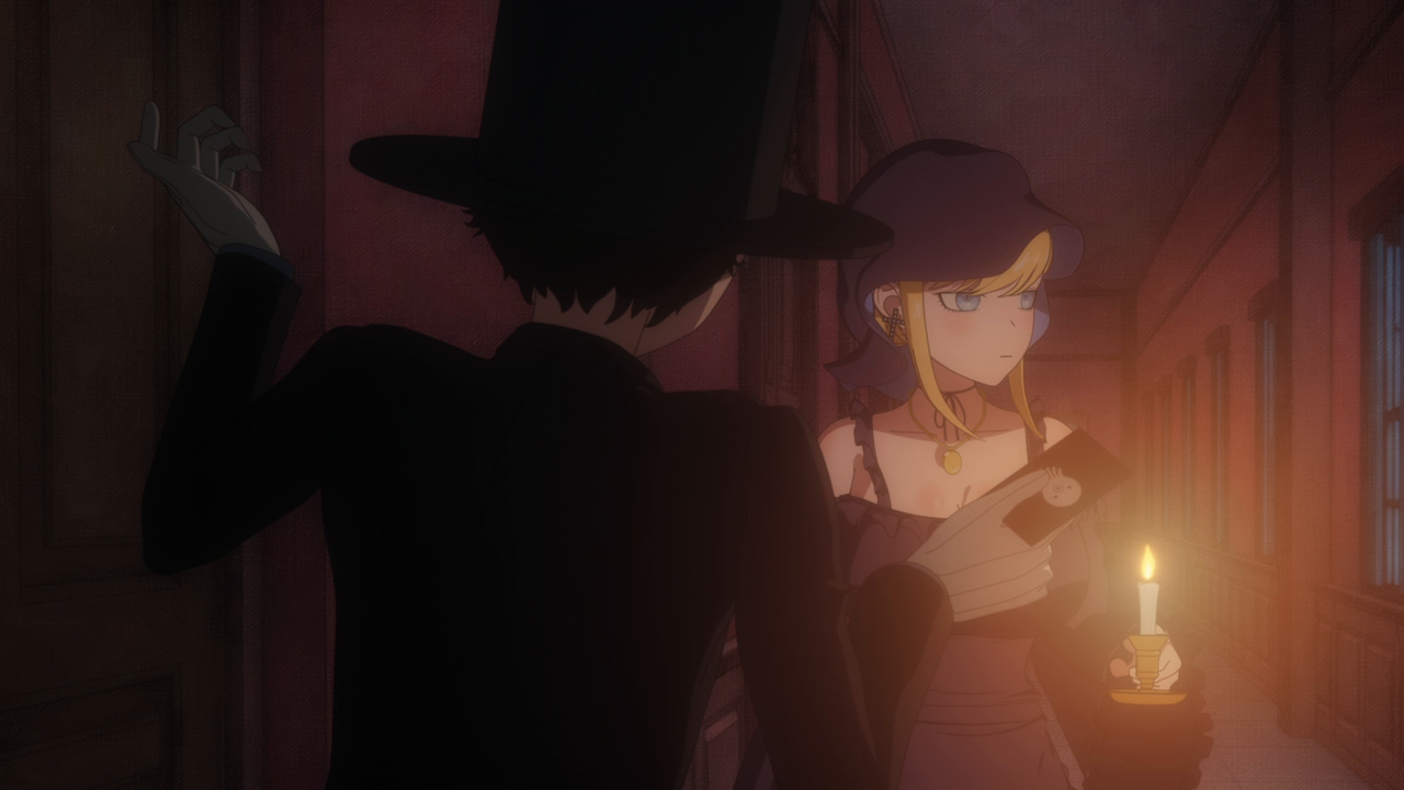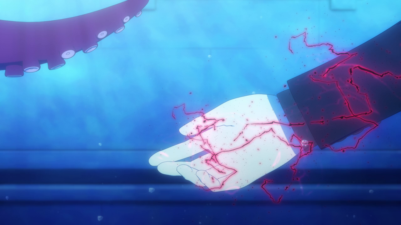 Even though we’ve only spent a little bit of time with her, I love Amelia already. I was wondering what kind of character she’d be, and I was expecting a more ominous character. But man she’s really cute! Even though her design is a little strange. Most of her is super cute but then her giant hands kill the design lol. And while I hate underboob designs, it kinda works with her. But yeah, she looks cute (mostly) and she acts very cute too. I love how she uses her camoflouge technique whenever she gets embarrassed so no one can see her. She’s broken the Duke’s type of curse before so she looked pretty confident that she’d break it. While Daleth sent her out as part of the deal, Amelia seems more relaxed about this and also seems to hold a more positive outlook on Daleth than the Duke. Obviously there’s more to Daleth’s character but we’ve only seen how mysterious and kind of eerie she can be, so I hope we get to see a different side to her soon. To win their trust, Amelia shows off her magic to the Duke and Alice and we’re treated to yet another song between them and just these really lovely moments of them swimming around the mansion with the fish life. Again the animation hasn’t changed too much but they’ve definitely bumped it up for this season. It just gave nice vibes and I was all for it. After they had their fill of fun, Amelia comes down to attempt to break the curse…and of course she wasn’t able to. The curse was so strong that the dark energy from it started to really affect her and basically knock her out. That, and being an octopus, she wasn’t used to being among humans and away from her precious ocean.