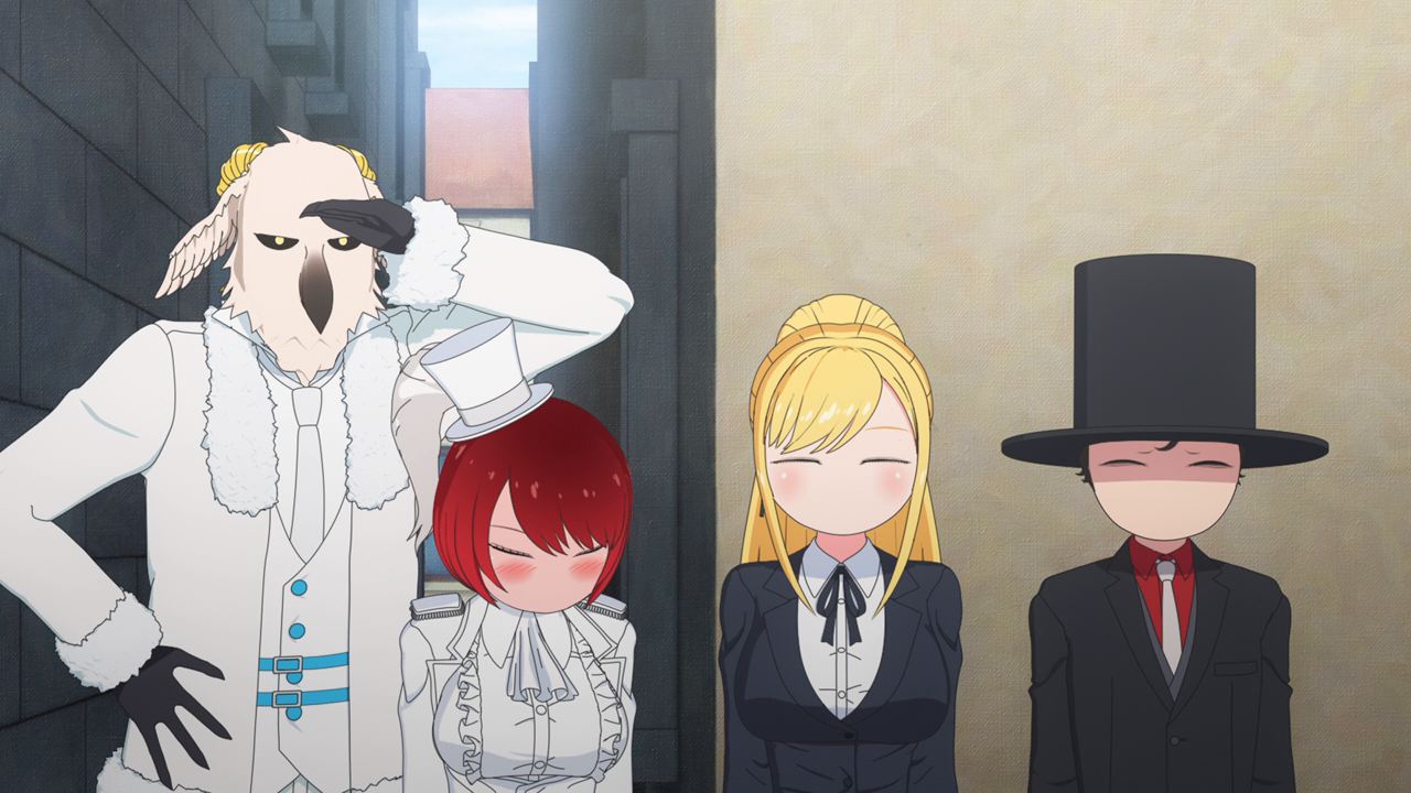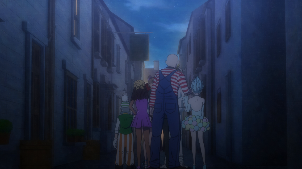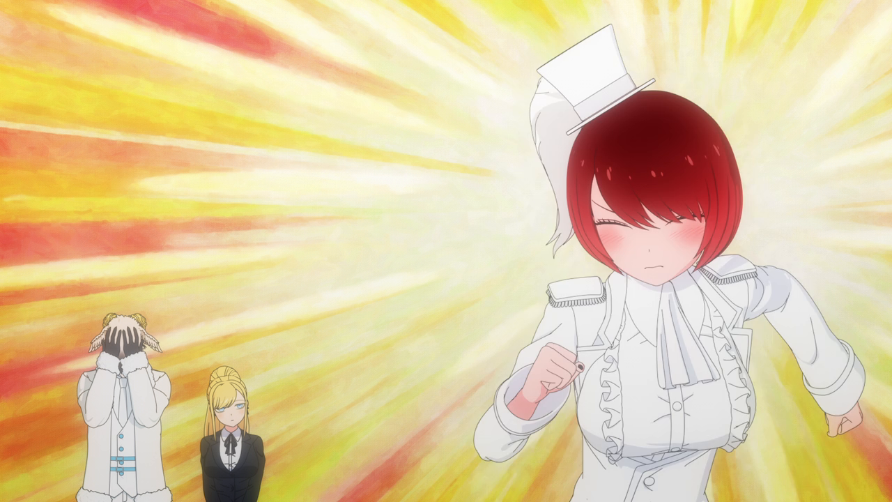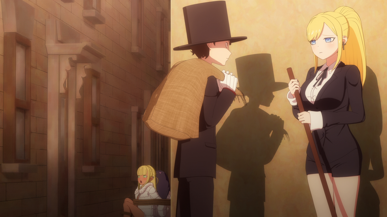 Circus Gemini has gotten permission to perform on the street and the show goes underway without a hitch, until Daleth and her with subordinates wreak havoc. Before all of this started though, Zain called Cuff over to have a talk with her to give her thanks for everything. Cuff had listened in on their conversation last episode so she already knew that he was planning on leaving her, and the way he was talking in this episode just made it that much more obvious. I knew there was going to be a confession from him just from the episode title but I didn’t think it would be during this part. I was expecting it during a more dramatic part of the episode but I guess Cuff was the one that handled that part when she gave him her answer lol. Still, with him wanting to tell Cuff everything on his mind it does make sense that would proclaim his love for her when he was planning on leaving her. Very funny that she didn’t even listen to the rest of the confession because she had already ran off in embarrassment, leaving Zain to be a little embarrassed too as a random passerby listened in. Cuff swaying around and trying to act normal (but failing) around Alice and the Duke was very entertaining. Especially when Zain just hovered around them.
