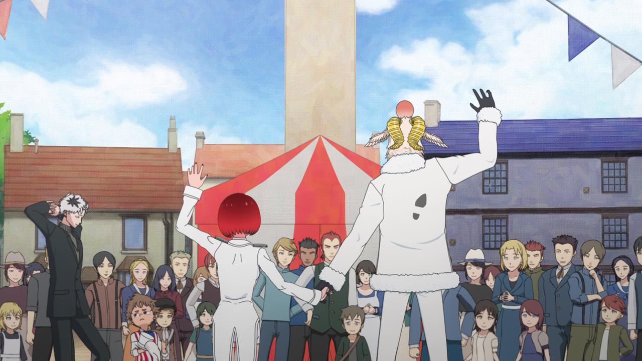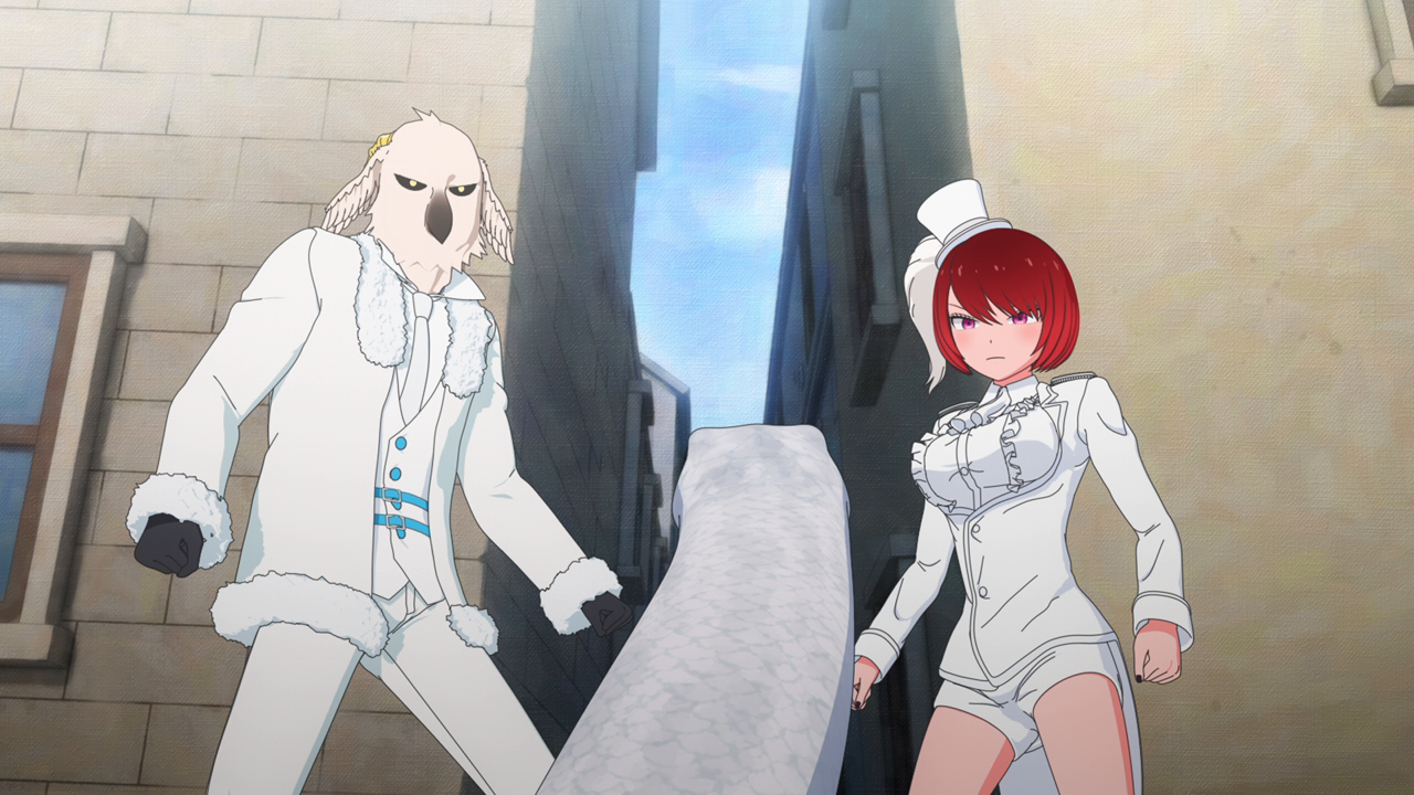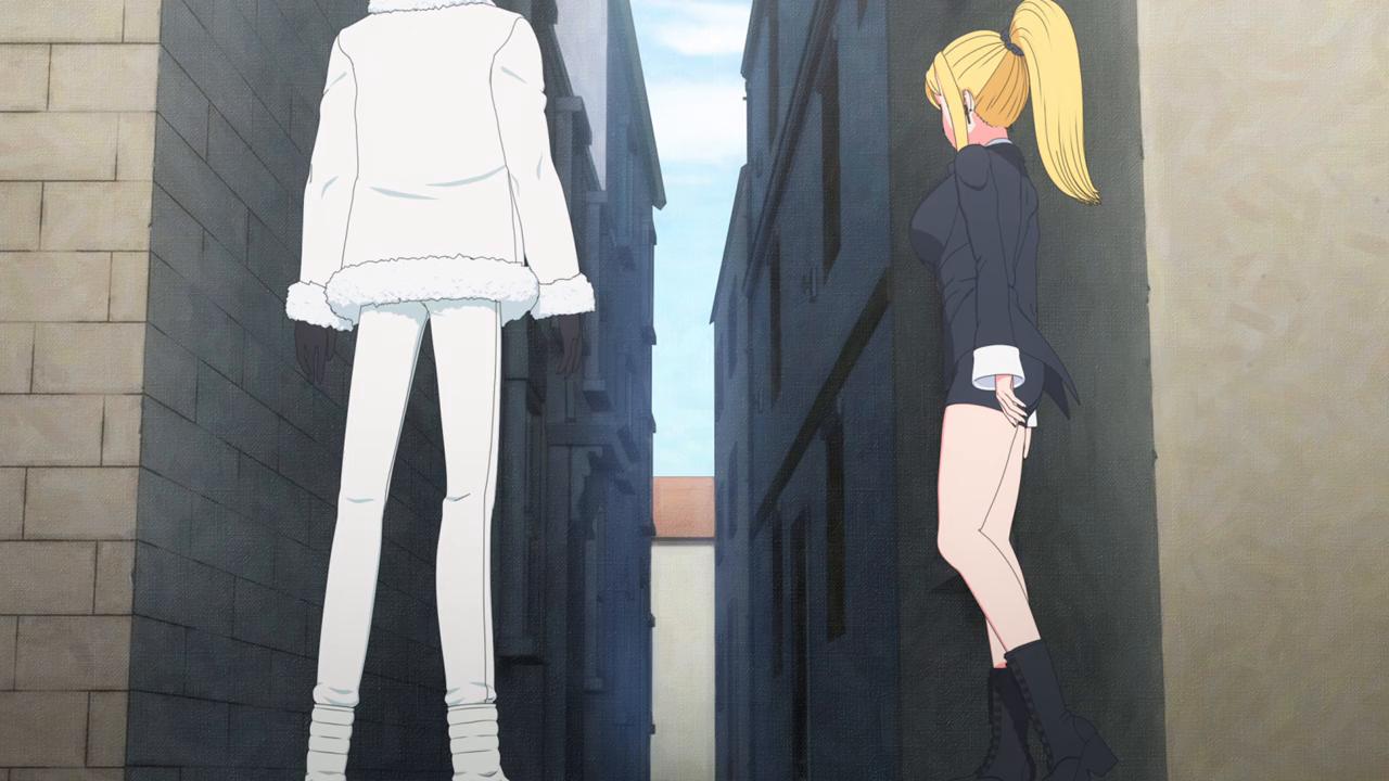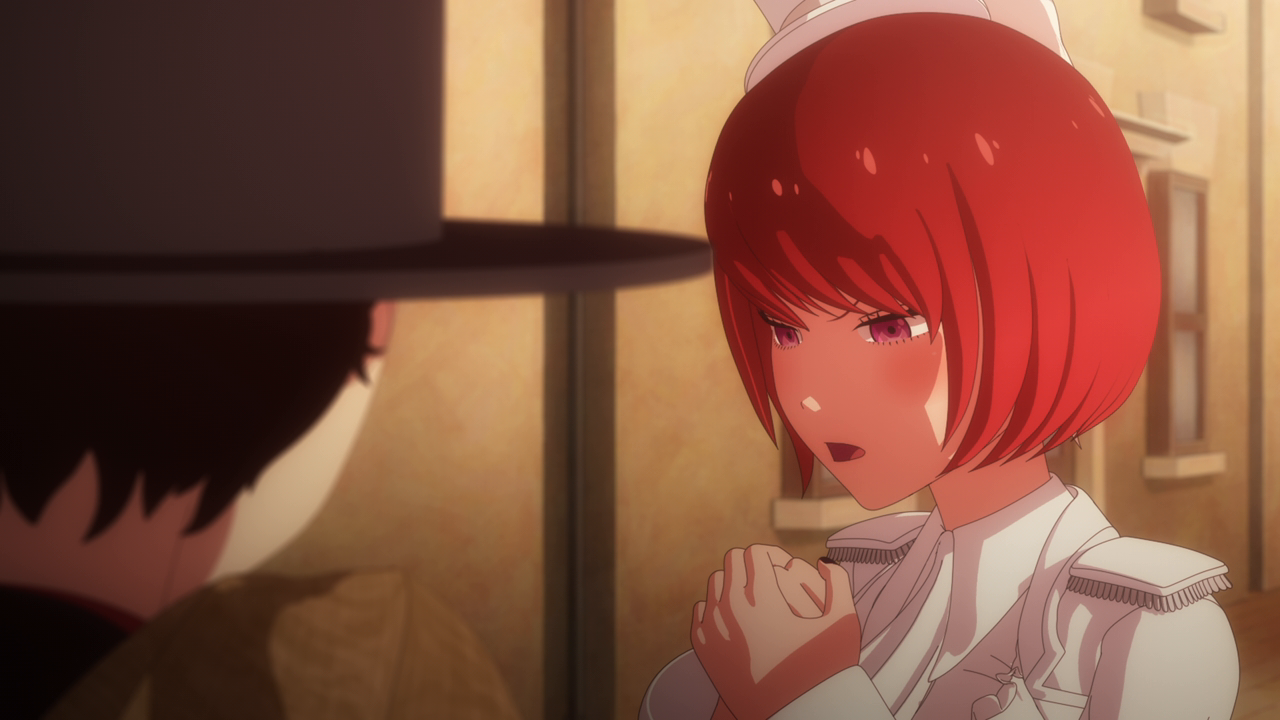 Circus Gemini has gotten permission to perform on the street and the show goes underway without a hitch, until Daleth and her with subordinates wreak havoc. Before all of this started though, Zain called Cuff over to have a talk with her to give her thanks for everything. Cuff had listened in on their conversation last episode so she already knew that he was planning on leaving her, and the way he was talking in this episode just made it that much more obvious. I knew there was going to be a confession from him just from the episode title but I didn’t think it would be during this part. I was expecting it during a more dramatic part of the episode but I guess Cuff was the one that handled that part when she gave him her answer lol. Still, with him wanting to tell Cuff everything on his mind it does make sense that would proclaim his love for her when he was planning on leaving her. Very funny that she didn’t even listen to the rest of the confession because she had already ran off in embarrassment, leaving Zain to be a little embarrassed too as a random passerby listened in. Cuff swaying around and trying to act normal (but failing) around Alice and the Duke was very entertaining. Especially when Zain just hovered around them.
