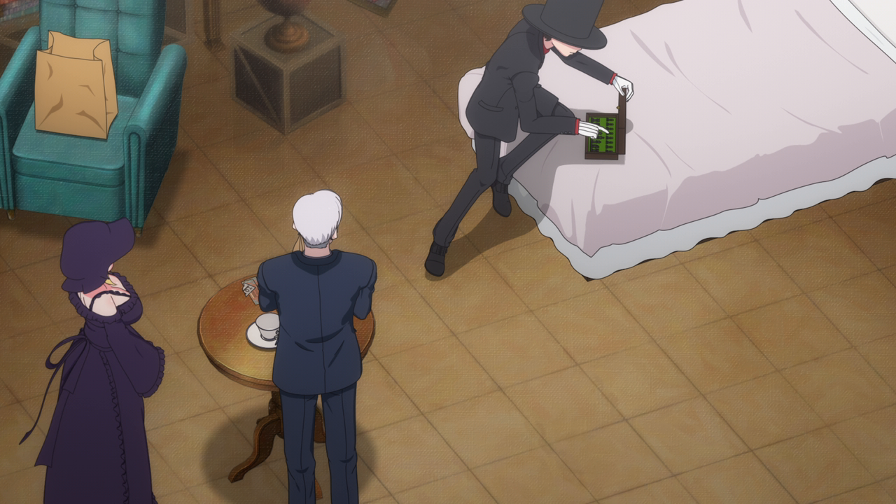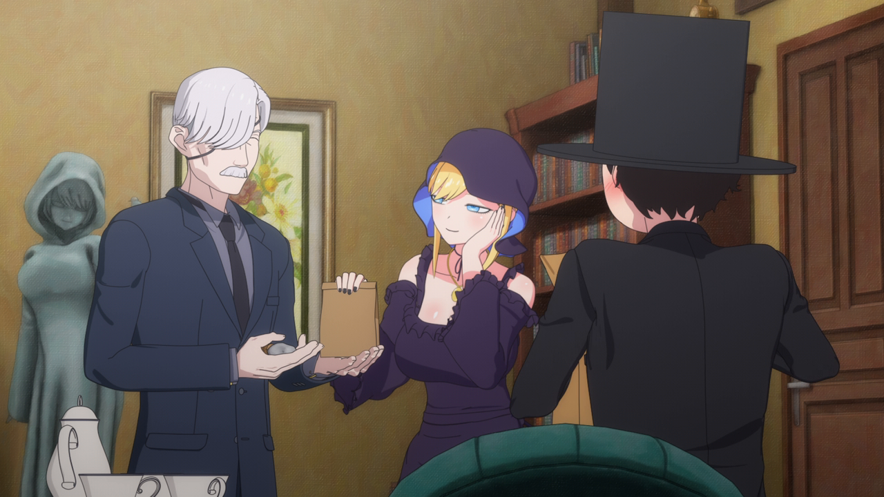 And the last is Zain and Cuff again! This time on their first date as a couple…except Hugo decided to tag along. But all for very sweet reasons being that he still likes Cuff, but he mostly just enjoys spending time with them because he doesn’t really hang out with his pickpocketing friends from before. Zain and Cuff are basically his friends so it’s nice that he wants to hang with them. It’s interesting that we’re getting so much Zain and Cuff romance. Honestly it feels like we’ve gotten more romance from them than from Alice and the Duke. And hey I really like these two and their interactions continue to be quite cute, but I will admit that I am missing the sweet moments between the Duke and Alice like from episode 1. And it’s not like we haven’t gotten things here and there, but it hasn’t been the main thing.
