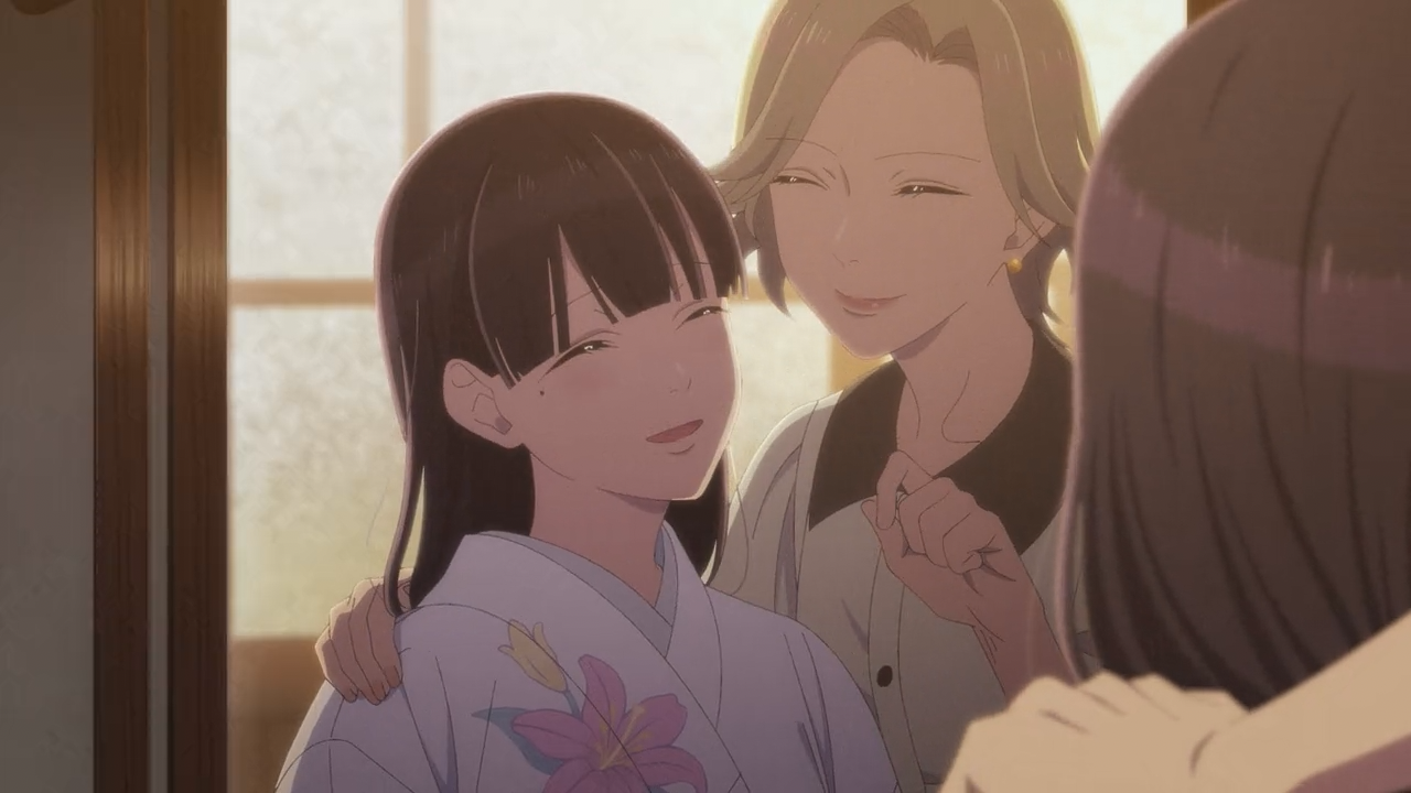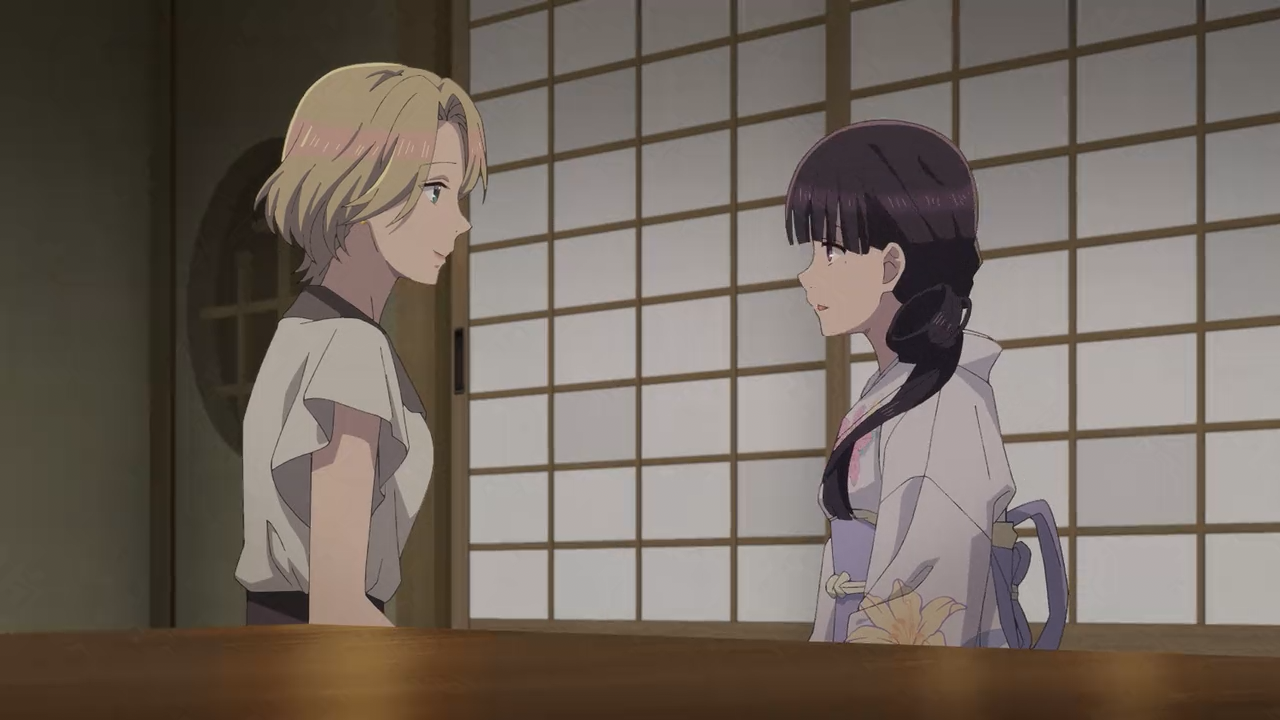 Miyo has been focusing on her lessons with Hazuki, which is honestly something I am thankful for since it gives her something else to do at home while Kiyoka is very busy. She and Hazuki have been getting along swimmingly, but we saw how the deeply rooted trauma that Kaya has scarred her ability to be able to refer to Hazuki as “sister”, and it prompted her to wonder what it means to be family. Understandably so considering she grew up in a household that didn’t treat her like family. In fact I really liked the way they conveyed that bit. This was more or less close to what I had hoped to see them do back in episode 4 when Miyo had the unfortunate encounter with Kaya in the city. Small details like that do a great job displaying how she’s internally coping. Actually it does make me wonder if following up from last week’s episode, if the staff (at the time of the development) realized at that point that it’d be a good idea to start putting more attention to detail in that regards, but I digress.