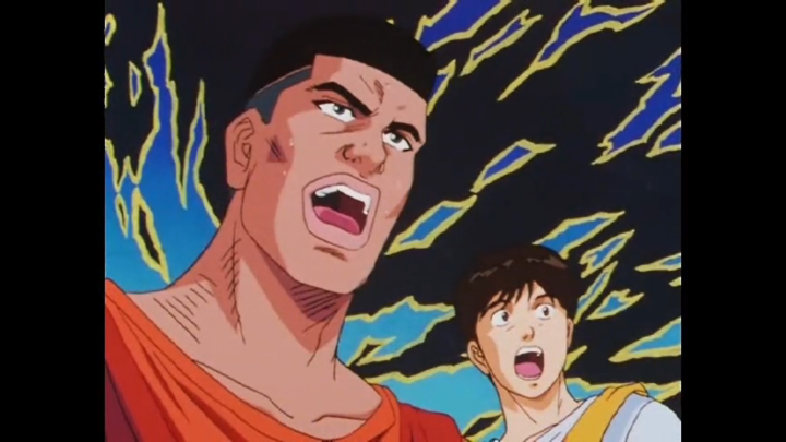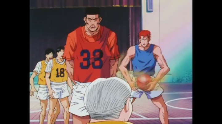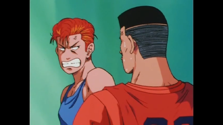 And the match between the first years and their seniors continue! We start to see more of Rukawa’s competitive side and it’s so strong that even Hanamichi has a moment of awe towards his biggest rival. But that is quickly overturned once his jealousy strikes again.