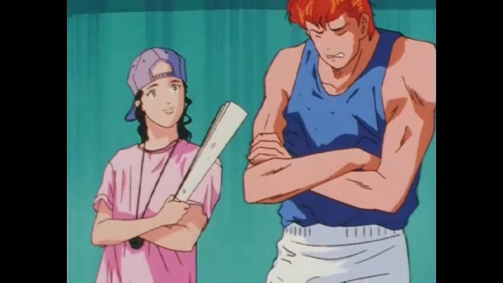 Thankfully, Ayako and Kogure also want to give him a chance on the court. Ayako seems to want to put him in his place or for him to realize that basketball isn’t all that he keeps making it out to be. Kogure on the other hand sees something in their rookie and wants to see him in action. So all in all, congrats Hanamichi! You get to show off your skill on the court! But please remember you have teammates. Even if you don’t like them you have to play with them. … Actually, I anticipate that will be a topic in a later episode. Even Rukawa’s not the best when it comes to playing as a team, so I anticipate that the coach will make the starting lineup and then quickly realize there’s just a lot of teamwork issues that need to be addressed before they can even be a functional team.