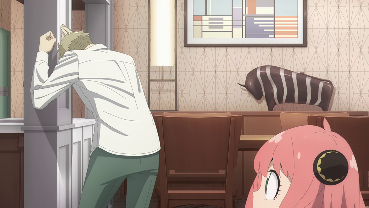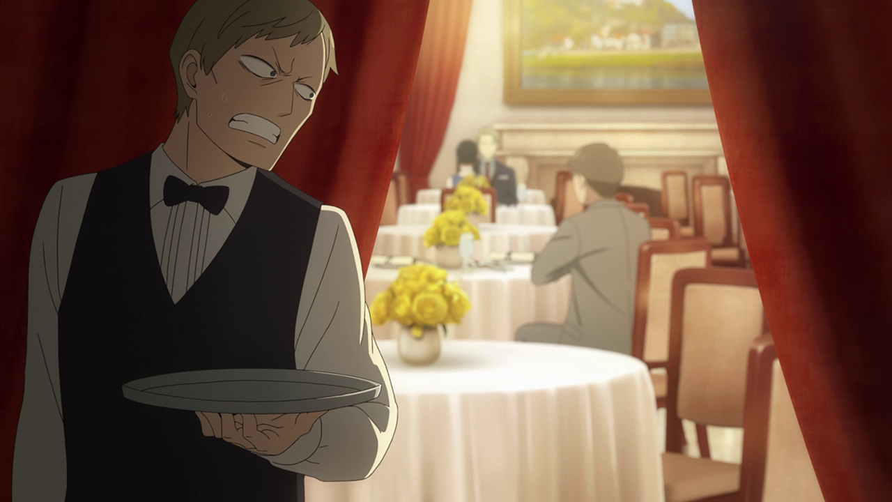 Anya actually has a rather epic moment in this episode despite me still not being able to take her that seriously. She was actually able to emulate Loid in a way with all the traps she laid out for the waiter. Not to mention put together a functioning bomb which is like: this child needs closer supervision. It was pretty funny how they bleeped out the ingredients the guy was planning on using since I’m sure they didn’t actually want to list out how to make a freaking bomb. I got a good chuckle from the how off key the music sounded while Anya was playing out teaching the waiter a lesson.