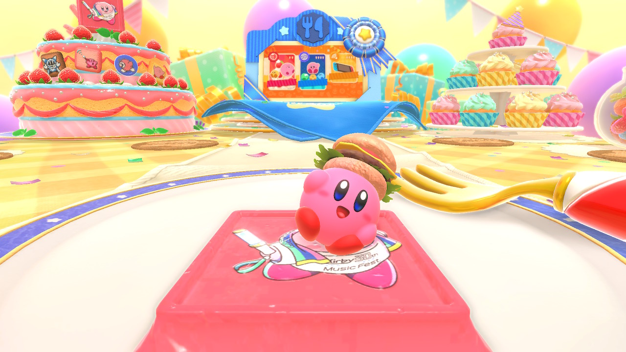 And let me just say this outright: This game looks GORGEOUS and DELICIOUS. I was in awe at how accurate and so incredibly detailed the food in the game looked, to the point that I was distracted haha. The fluff of the cakes, the glistening of the bacon, the texture of the donuts. Most of the courses are based on sweets and desserts like strawberry shortcake, pancakes, donuts, ice cream. But there are also savory courses like barbeque, sandwiches, and burgers for example and they absolutely look delicious as well. Considering the game is based on Kirby eating, it’s no surprise that they’d put so much effort on making the food look as delicious as possible and they succeeded. Aesthetically this game is amazing, it’s vibrant, and most importantly, it’s adorable as well.
