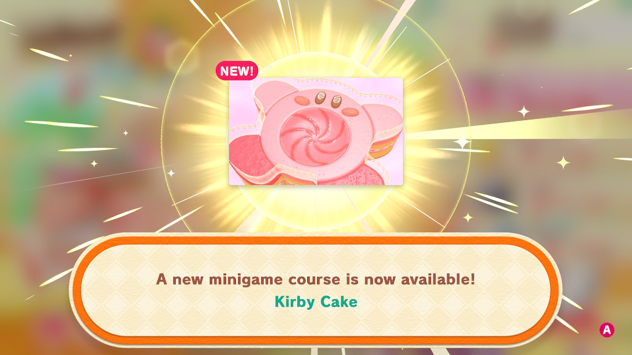 With every game you complete, you’ll receive experience points to level up which makes you unlock treats and unlockables, like stages and costumes. When I say treats, it’s stuff like cookies or chocolate squares that have official Kirby art from all of his games. You can use these treats to decorate the small cake on the menu screen just for fun, nothing more to that. Also at the start of each race, your Kirby lands on a square cookie. With the treats you unlock you can actually customize it so you can have one of the unlockables set as your starting square. Again, nothing too significant but a cute cosmetic.