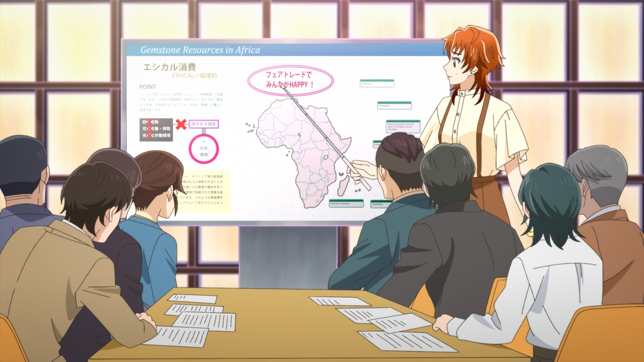 This time the spotlight was on Rin. She’s having a tough time at her job, especially when she’s being told she should go to the sales department when her dream is to be a jewellery designer. Oof, talk about a slap in the face of one’s efforts. She hasn’t had any success lately with the design competition, so that’s why it’s been recommended she switch department, but still… That feels so bad man. I’d hate to be in that position.