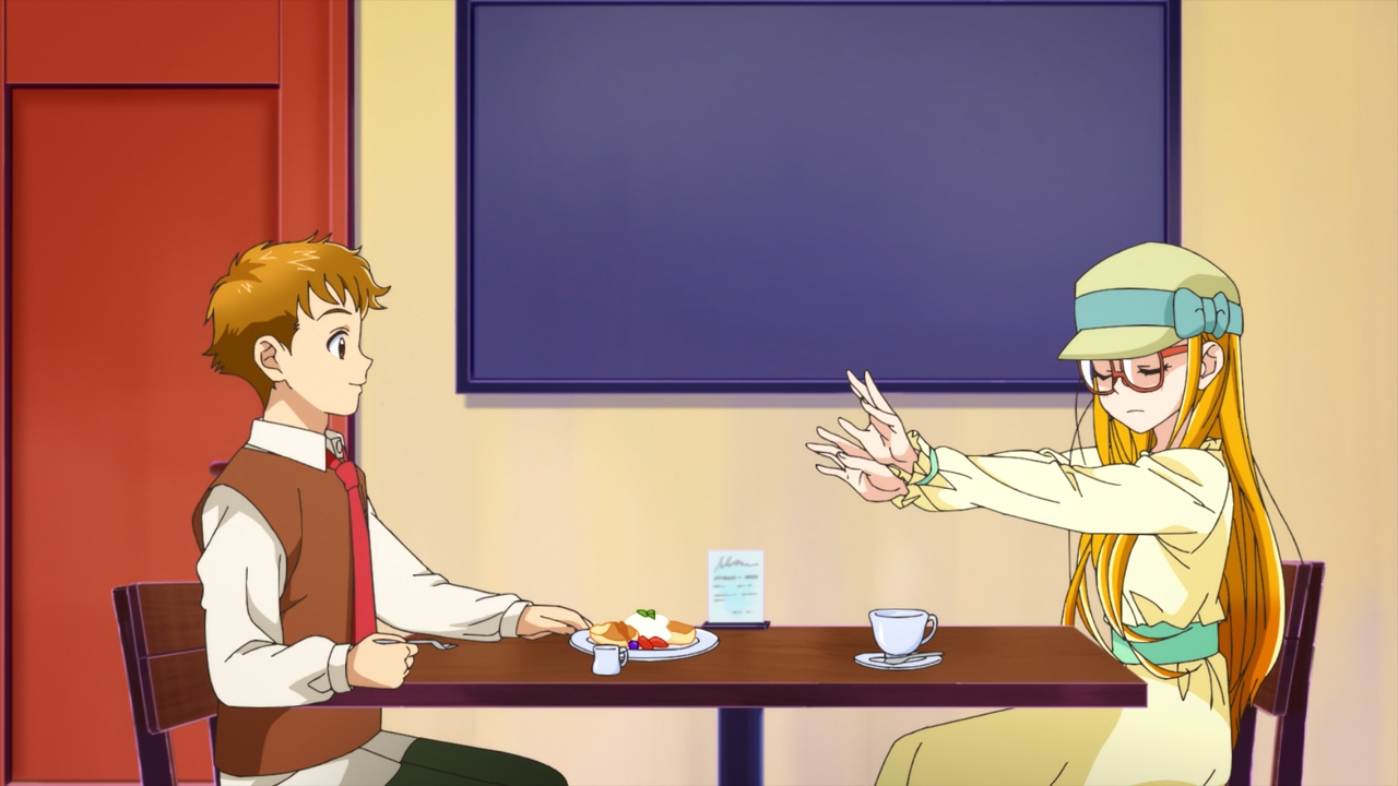 Now that Coco is sticking around for a bit, they are definitely trying to give him and Nozomi as much time together to really sort out their feelings as well as figure out what will become of their relationship going forward. They obviously still love each other, but the problem is that they are literally from two very different worlds and have their own dreams they wish to pursue. Unless one’s dream were to change, (which is also entirely possible), in order to be together, someone is going to have to give up their dream. Coco did try to have a talk with Nozomi this week– which revealed he HASN’T BEEN REPLYING TO HER LETTERS (OH MY GOD MAN, WHAT IS WRONG WITH YOU!?) but as expected he was interrupted with the whole Shadow crisis at hand with Urara and Syrup, so it’s been postponed until further notice. I suspect it will continue to be this way until probably episode 10. Until then, we are seeing the two spend more time together so we’ll see how they fare.