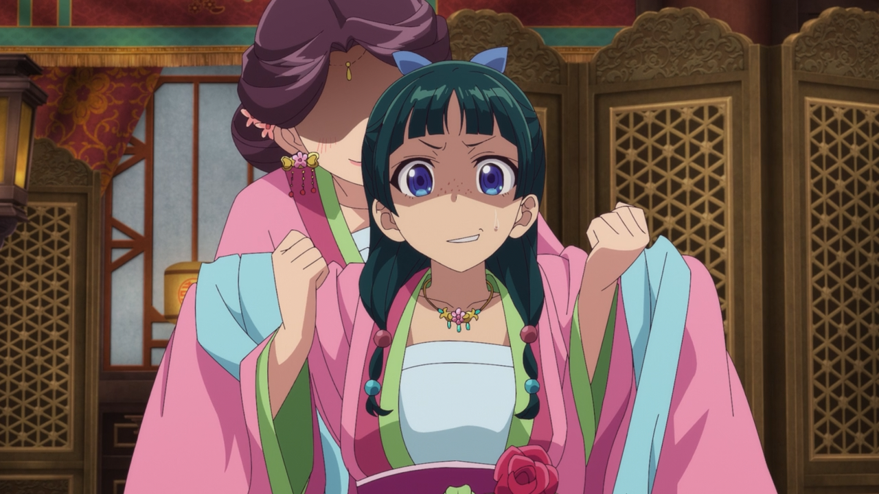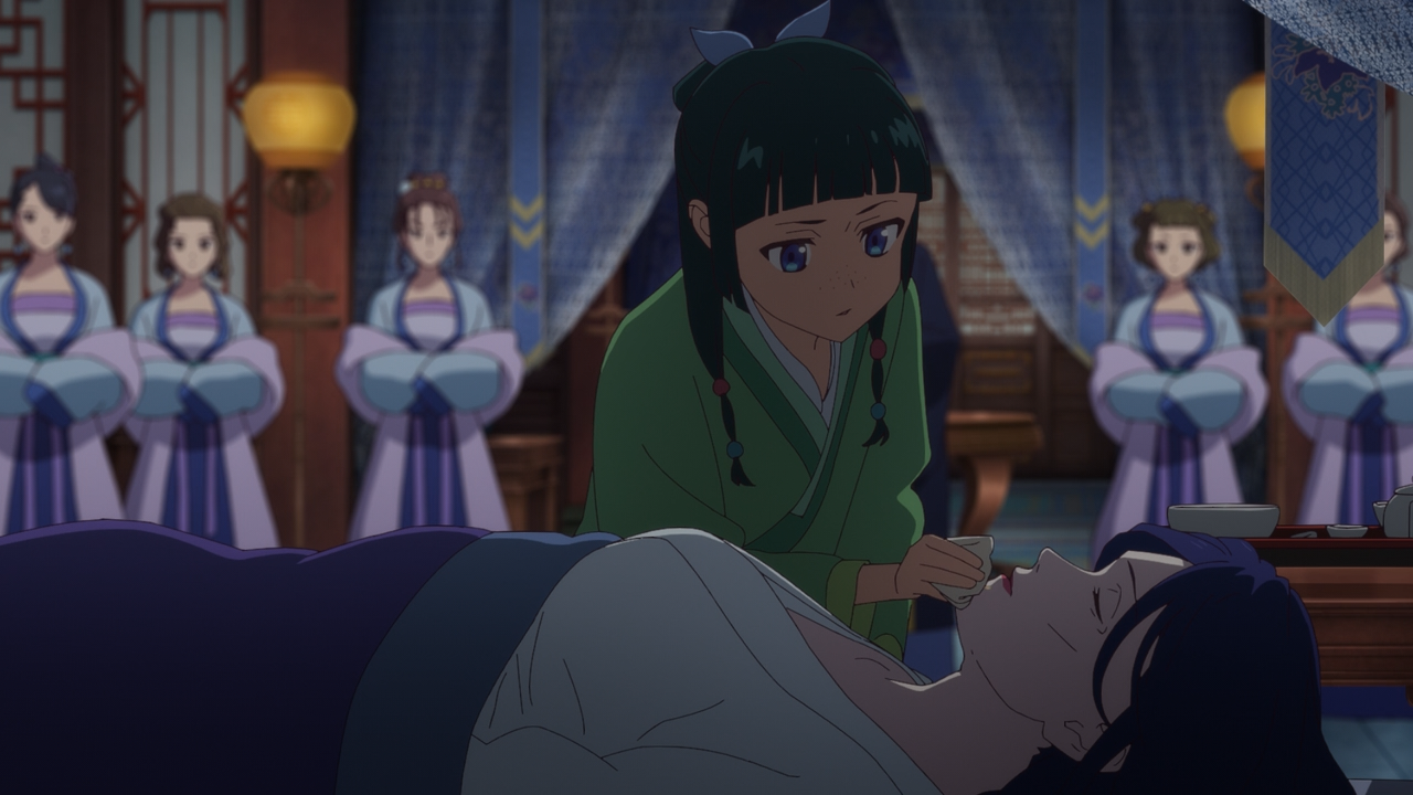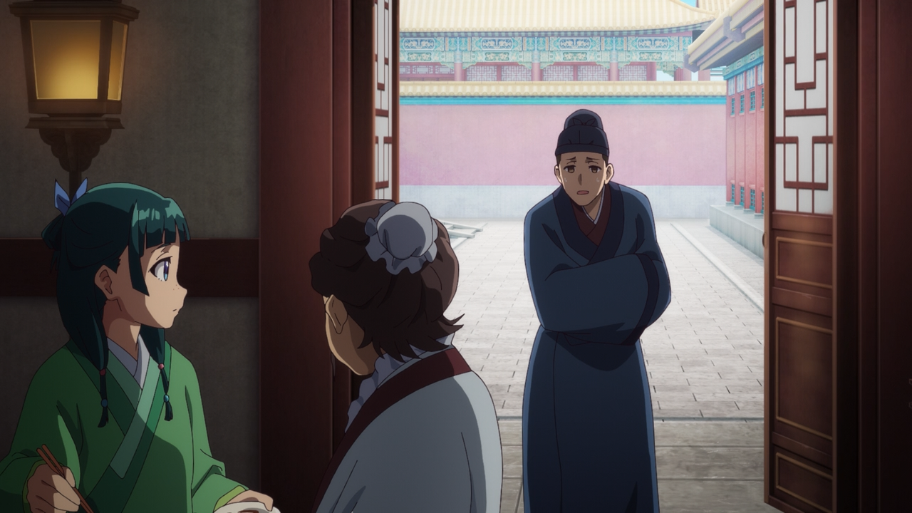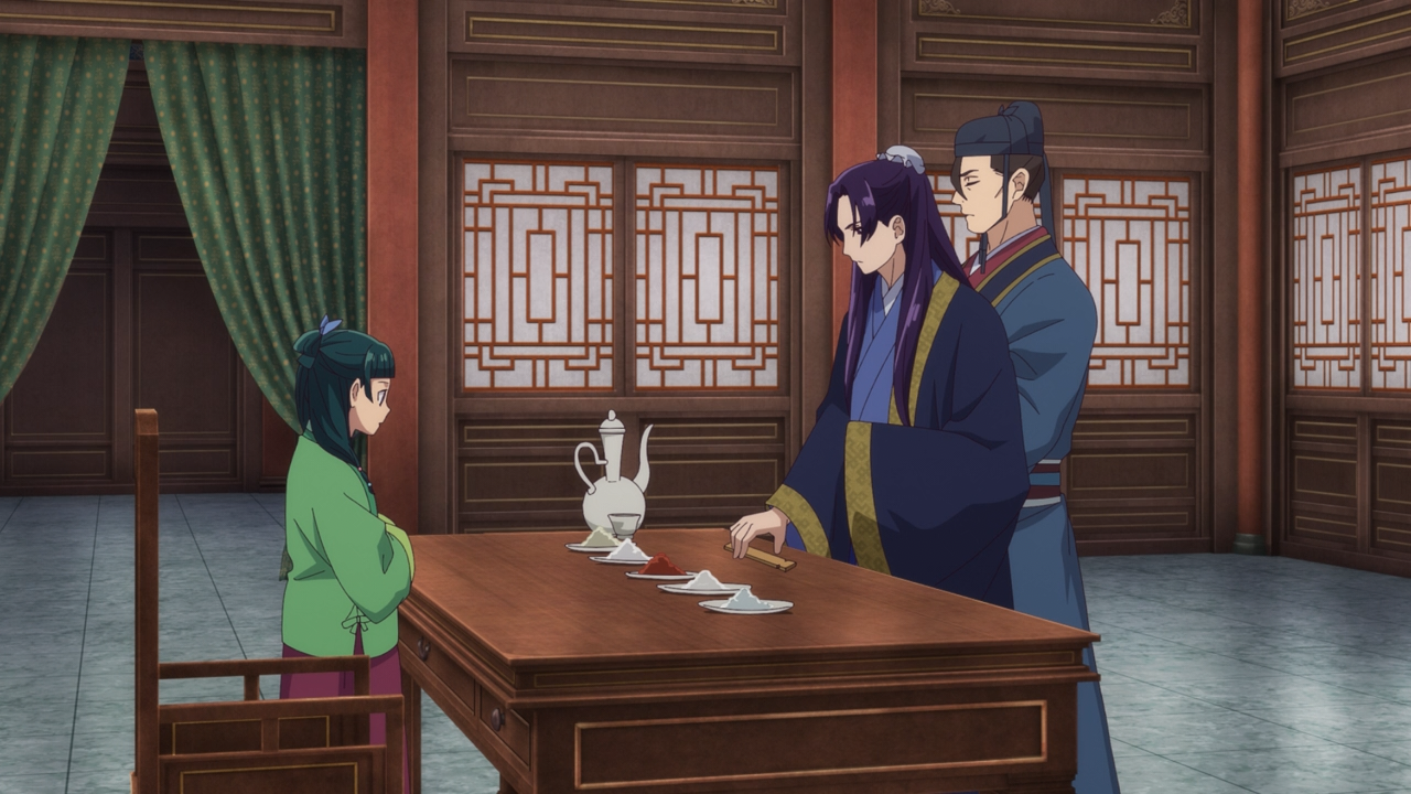 The anime looks toned down than the manga at the part when Maomao put that arrogant lady-in-waiting in her place. But nevertheless, it’s still very satisfying to watch Maomao finally snapped at them for their negligence and carelessness. One of my favorite moments for sure! If I recall it right, that lady-in-waiting seems to have an influential father or something, so maybe that’s why she got lighter punishment.