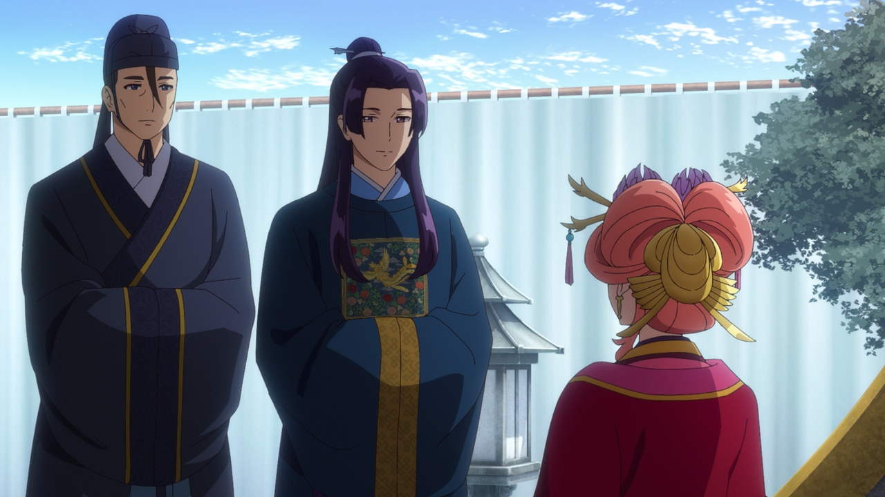The mystery of the episode started off with an Eunch’s simpleton fear of thinking he had been cursed only for Maomao breaking it down that it’s just part of science. But it’s actually in part of a larger mystery going on behind the scenes, as Jinshi ended asking her wisdom in regards of which materials causes the fire to turn a specific color. He has yet to divulge the details of this investigation to her, but as we know right now, the eunch who got the rash had found a woman’s burned dress and wooden tablets, and now Jinshi is trying to trace down a suspect who is believed to have a burn. As it stands, he bears concerns that this perpetrator may cause problems during the Garden Party, which is why he was trying to apprehend them before then.