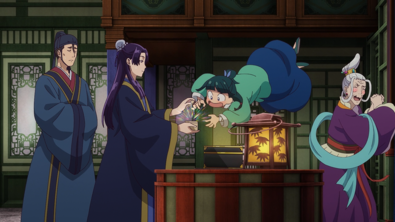 There was not a whole lot going on this week, to the point that they spent quite some time sending Maomao on a wild goose chase to finding Jinshi, to later using another musical montage of flashbacks again.  I’m not surprised that was the case as this episode was all about wrapping up Volume 1 of the Novel. So there really wasn’t enough to fill up the episode without jumping into the next. But all things considered, it was fine.