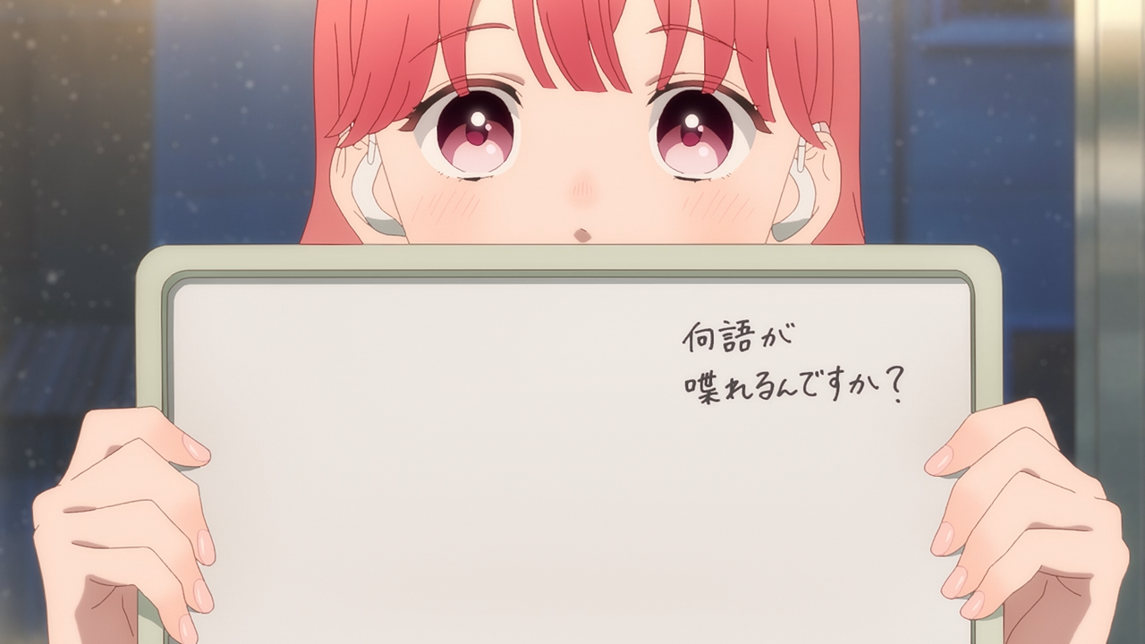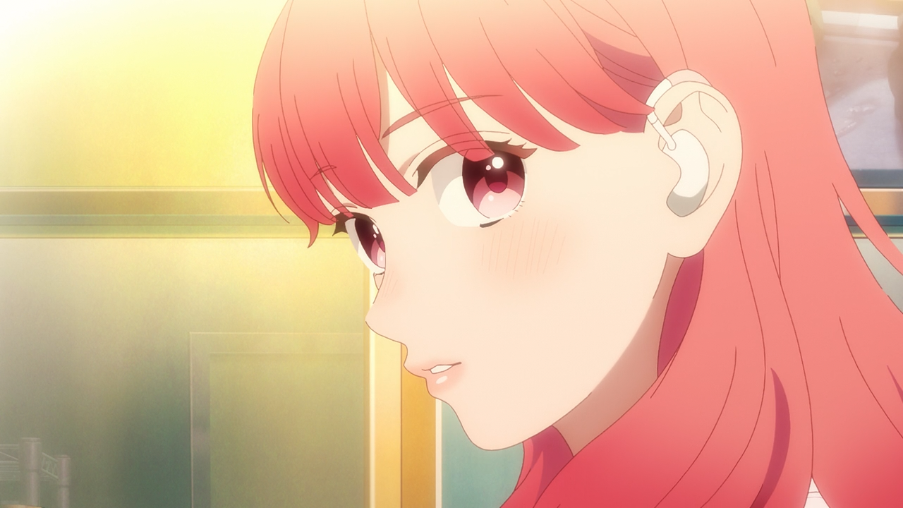 But gosh, let me tell you: I didn’t expect myself to be crying while watching this. Like full out tears man, WHO’S CUTTING THE ONIONS?!?!?! I gravely underestimated how just hard this would hit home in such profound ways. It hit differently than Koe no Kotachi did, because as much as I love that series, that one was straight up depressing. This just feels so relatable on so many levels because unlike when reading the manga, the anime allows the viewers actually experience the silence in the world of hard of hearing and the deaf. Not hearing the cars, motorbikes or bikes– god sake bikes I tell you man, those are the hardest because the rider sometimes or most of the time just assumes you can hear them. Nerve-wracking I tell you! The quietness or silence of the train sounds, the loneliness of not knowing what conversation is being had, and the inability to jump in, but also the times you instinctively know that you’re being talked about. And I absolutely loved that they didn’t voice over the messaging, but in reality that’s exactly what it is– silent communication. So yeah, the team did such a fantastic job of giving us a little insight to our world.