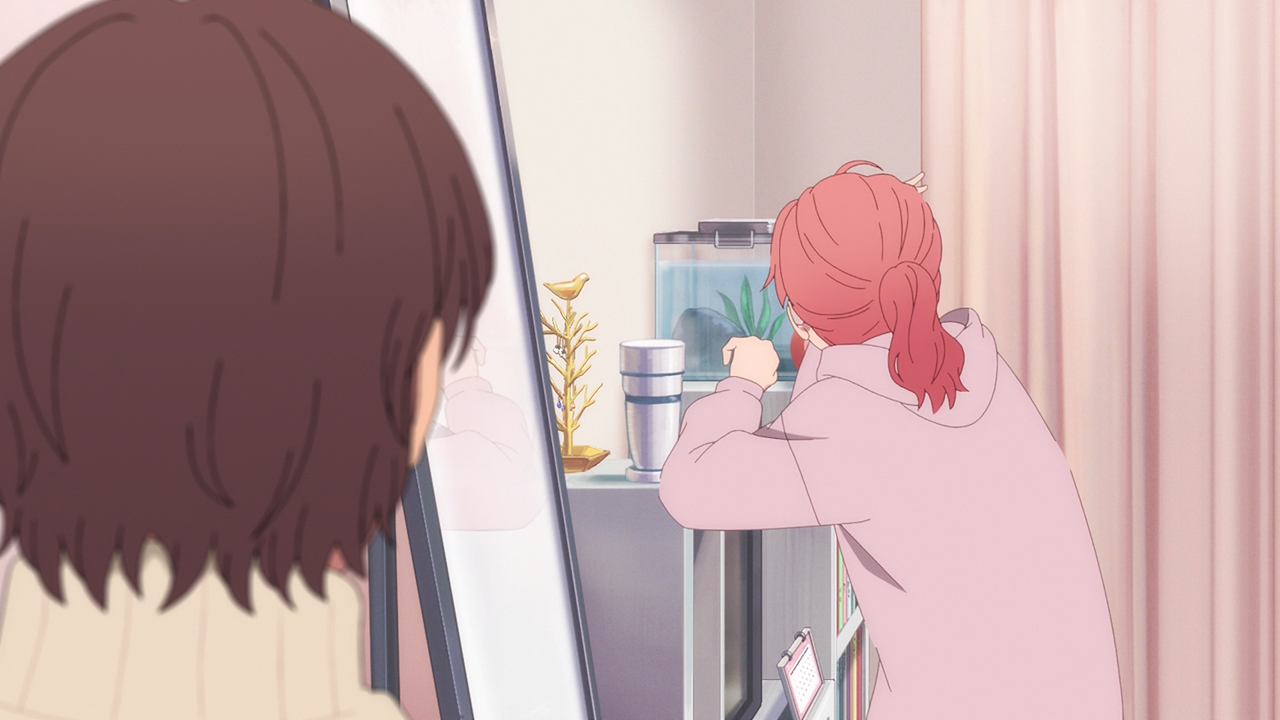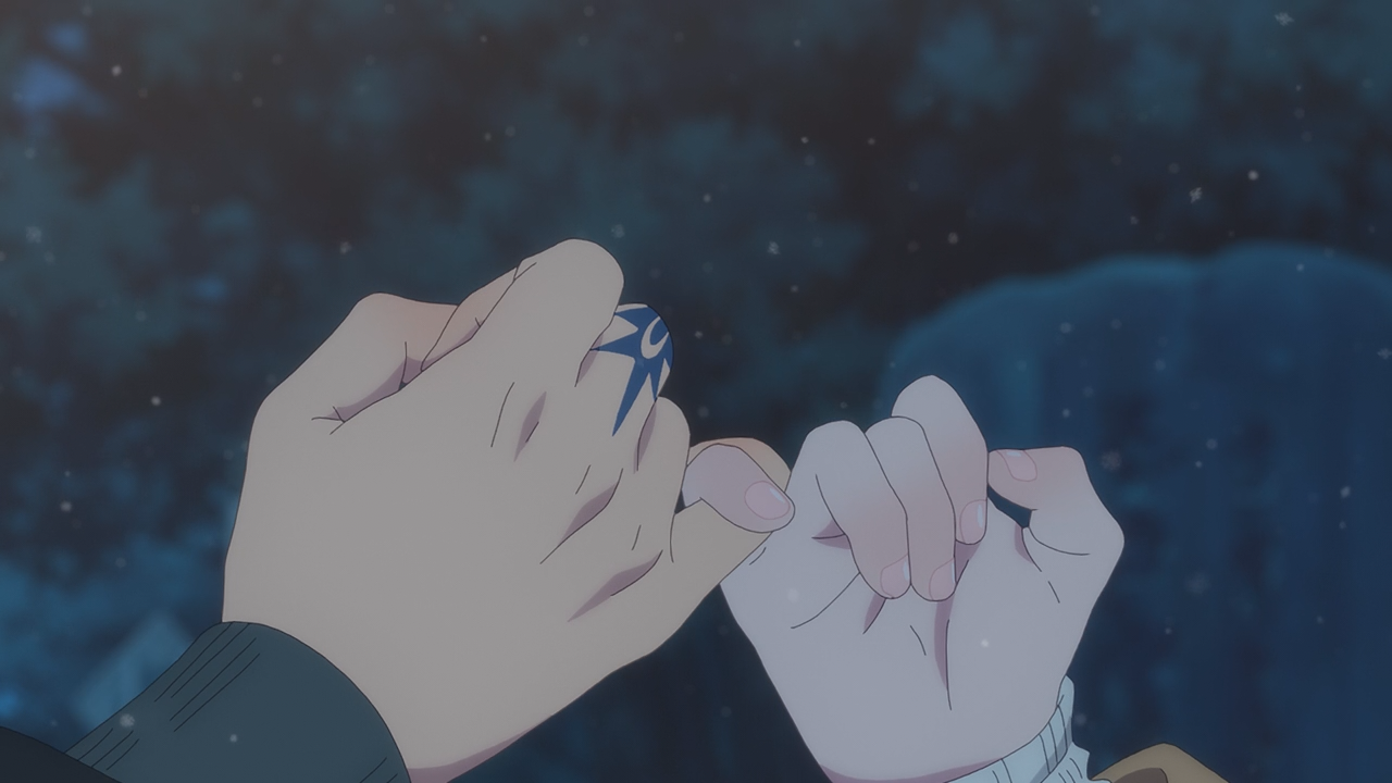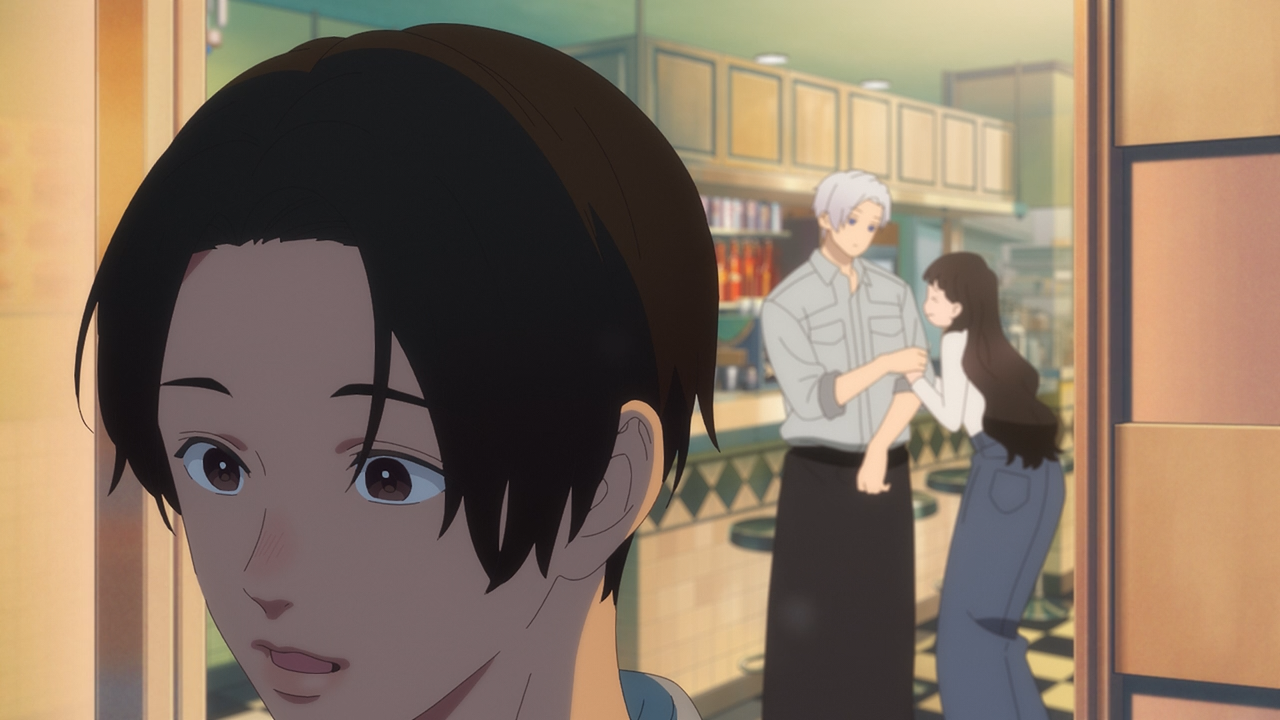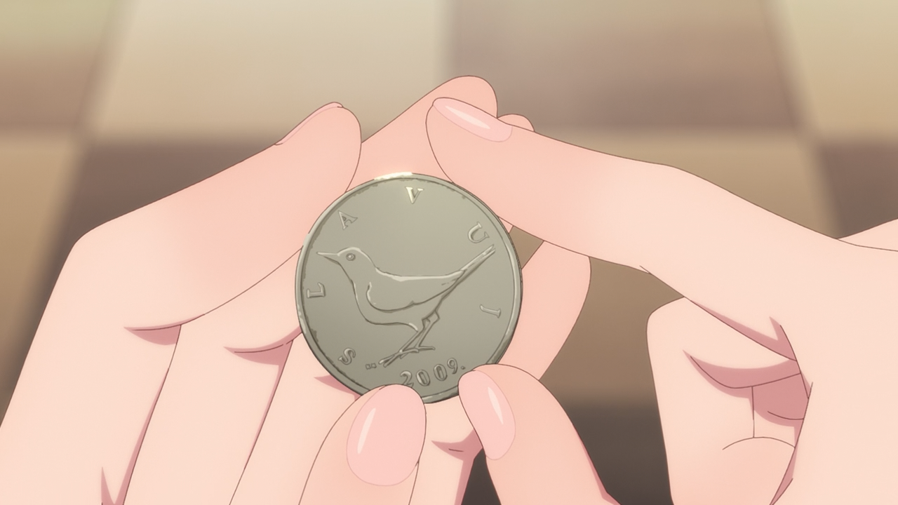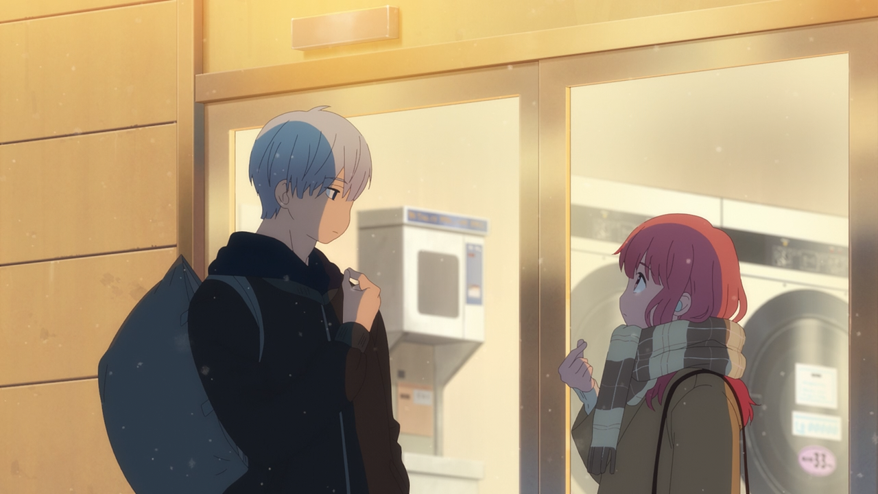 The other little gripe people might have had with Itsuomi had, though it didn’t bother me too much was asking her to come to him after dark (though considering her mom wasn’t concerned about it, it goes to show she has a degree of independence that Oushi can’t fathom with), to meet up together at the laundry mat. Or how he didn’t say hi right away when she showed up (which felt like a provoking jab in a sense of after hearing Oushi rant about how he’s not a good guy), though what he had thought instead was to get her something to drink because he noticed she had ran the whole way there. Then when she offered to pay for her drink he said it’s okay, but then asks if she had a 10 yen coin because he only had a Croatian dollar on him stopping him from getting his own drink. I didn’t think this was rude in any sense, and to boot Yuki got another souvenir from abroad, something she’s very interested in too. There was also this moment when Itsuomi did share a bit about himself, knowingly that she wasn’t going to hear it because neither of them were looking at each other. So I feel like it was more for the audience to know and him speaking out loud to himself than it to be shared with others to begin with.