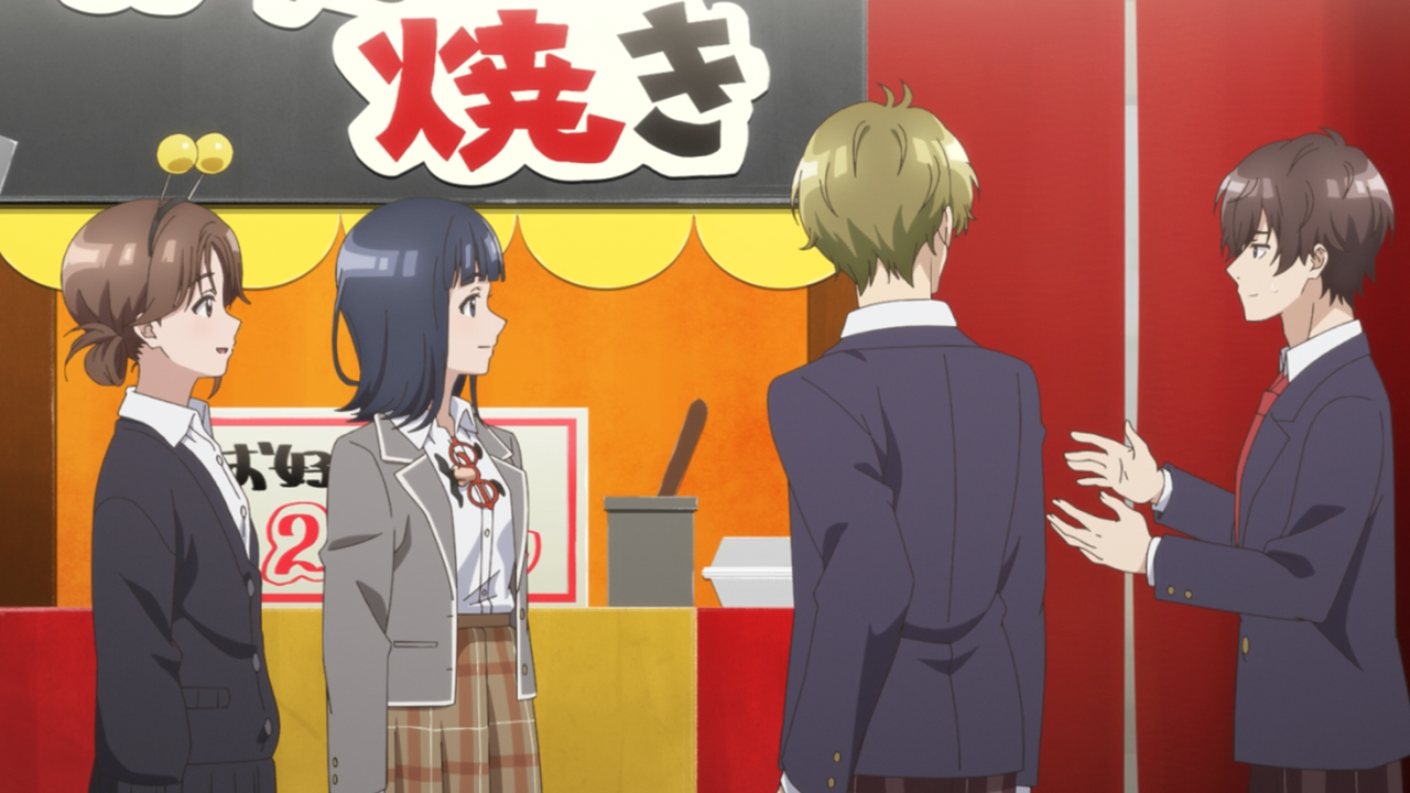 I do wonder how this confession will follow because it does feel like Fumiya is unconsciously attracted to Fuuka (and vice versa) as the two of them were pretty flustered around each other when it came to taking a selfie together. (Honestly I was a bit surprised that Fuuka agreed in the first place, but I will commend her for her efforts of stepping outside of her comfort zone, but I digress). While I am heavily biased in favour of Fuuka x Fumiya, I’d be lying if I said there wasn’t chemistry between Minami and Fumiya either. The question now is whether he’s willing to try to explore that or not. Perhaps the comedy skit he has promised to do with her will shine some light on that. (Though I do hope he’s not spreading himself too thin with how much grounds he gotta cover for the festival).
