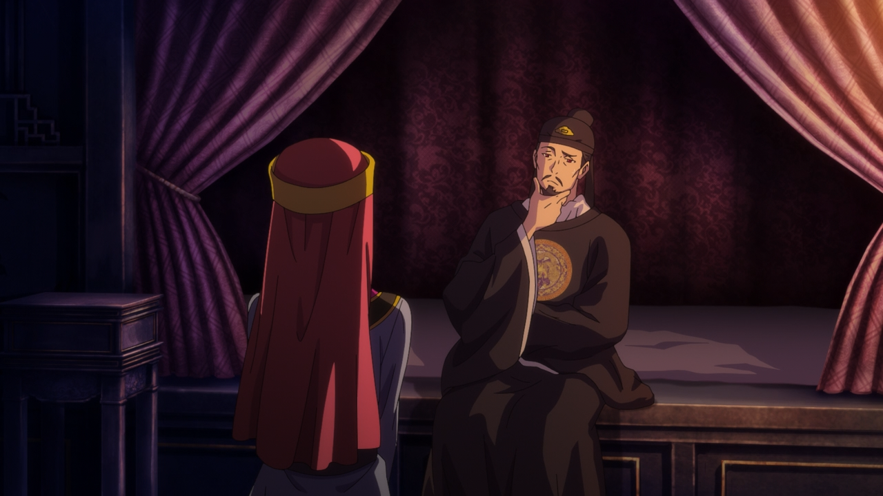 In order to maintain his role as an eunuch, Jinshi takes medicine that suppresses his masculinity, which includes altering his voice. There’s a reason why Jinshi is doing this, the bet with the Emperor is part of it, and the fact he’s desperately and impatiently wishing for the Emperor to have a baby boy already. This points to two things: The first is that he really hates being royalty, and should the Emperor fail to have any sons, he has zero interest in inheriting the throne.
