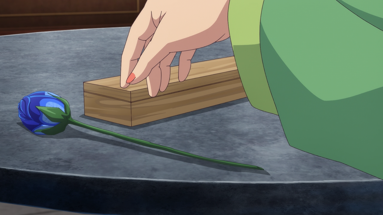 Although Maomao was unable to get the roses to fully bloom, she was able to at least get enough roses to bud enough to be presented to the Emperor. She made sure to show him the dyeing trick to making the roses turn blue, or whatever color they desire in advance so she wouldn’t get into trouble for ‘acts of deception’. In the end, the final product that was handed over to Jinshi to present to the Emperor at the party was a couple of blue roses along with an assortment of different colors to make it look all the more impressive.