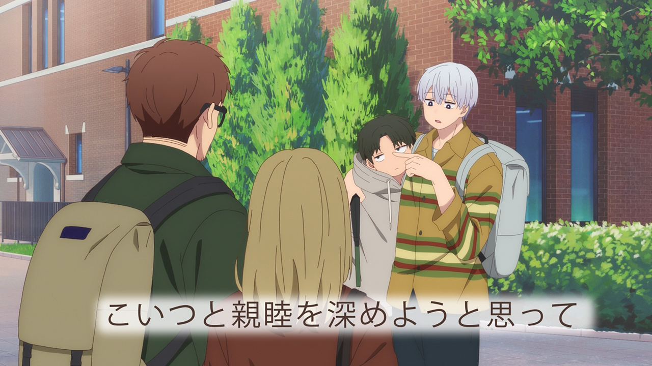 Unfortunately even though I enjoyed the banter between Itsuomi and Oushi, I hate to say it but Oushi’s just that type of character that doesn’t vibe with me. Besides the fact he’s just designed to fail in so many ways, the friendship between Oushi and Yuki (at least portrayed in here in this anime) just comes off as totally superficial. It feels like there’s no real bond between them with the way Yuki doesn’t seem to reciprocate his interest in being around him. So it does come across as one-sided on his part. And go figure when all we seem to see is him nagging and belittling her desires to make her world bigger. Who wants to be around a negative nancy like that? And to make it worse, it’s because of jealousy and selfishness. While he has become enamoured with Sign Language, when it comes to Yuki, he gets all fussy about her looking at others’ hands because he liked the fact she would look at him when he’d Sign. In that sense, he wants to keep her world closed with just him in it, and that’s no way to go about it. Of course that doesn’t mean he doesn’t care for Yuki, but the point is his way of going about it is terribly flawed, and it’s certainly not the kind to win him any points. He really took Yuki’s closed off world for granted. That’s probably why I just don’t feel any sympathy to his character at this point. Besides, you snooze, you lose.