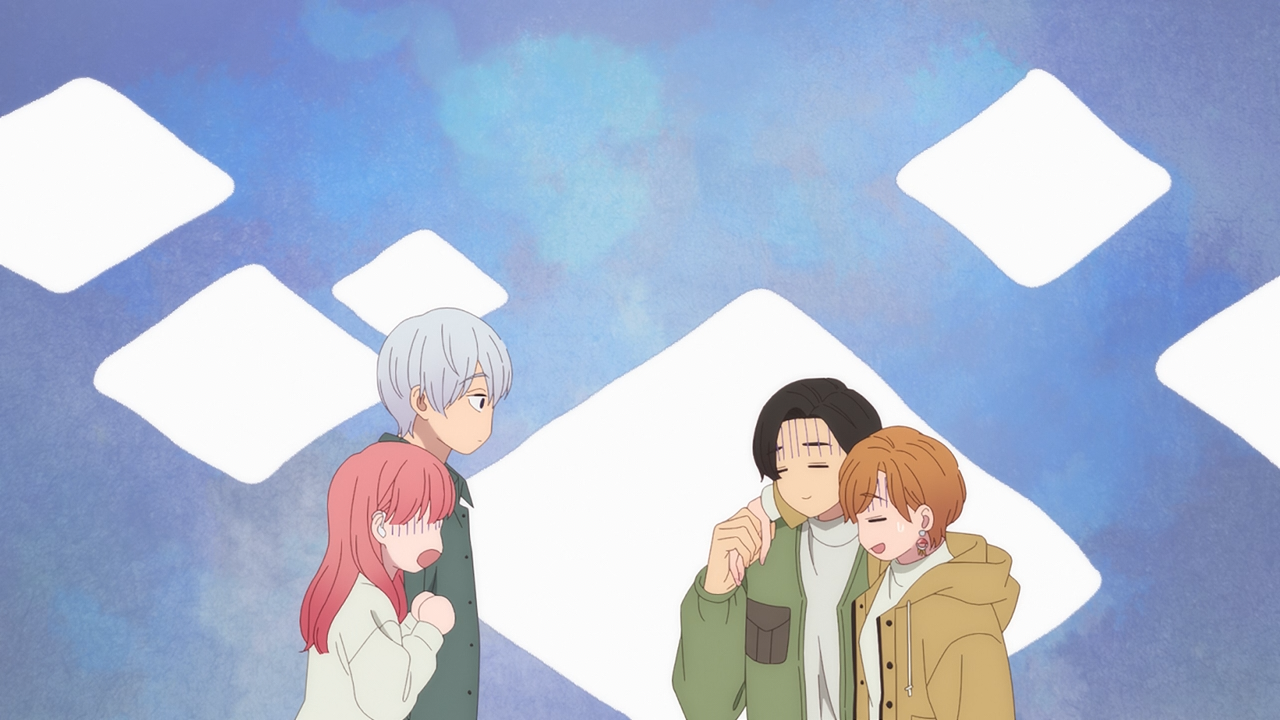 And finally at last, Rin and Kyouya finally got some time to talk about their feelings. It was mostly thanks to the catalyst of Rin’s co-worker calling her in hopes to get a positive response on whether she’d accept his feelings or not. Thanks to that, it prompted Kyouya to stop twiddling his thumbs and actually try to communicate, though I have to say he really did it in a terribly clumsy way. Well, at the very least despite that, they were able to get themselves on the same page and actually get somewhere— only for Rin to end up spraining her ankle after she slipped on rocks. Well, at least they made progress after being in a stalemate since the first episode. They are still ways behind Yuki and Itsuomi, who are off to the races, especially with Yuki agreeing to stay over at his place for the night.
