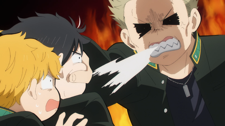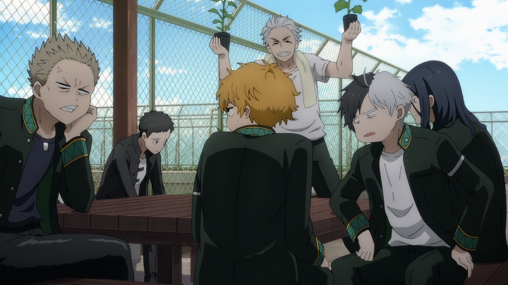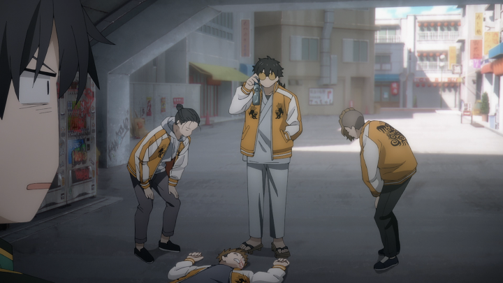 At first they seem like just another gang. A trio of members is chasing a middle schooler up until the tracks ultimately leading to an intense double kick from Sakura and Sugishita. One of the members is immediately taken out and it seems like there might just be a good ol’ fashioned street brawl. But then Jou Togame arrives. Everything about him, to Sakura, feels slow. He’s super lax in his approach to the group and generally doesn’t seem to care about the right aspects of a brawl. Through the interaction, it slowly becomes clear that this man is absolutely terrifying. And it’s only solidified when the kid that was knocked out by Bofurin tries to shout about territory only to get his face completely smashed in by Joe. Unlike Bofurin which seems to care very much about the relationships they have with others, and the ability to rely on them, Shishitoren doesn’t. If you’re weak, that means you are weak and worthless. It sends chills down the spine. Honestly, I think they did a phenomenal of portraying Jou as incredibly unnerving. I can’t wait to see what he’s like when he gets to go all out.
