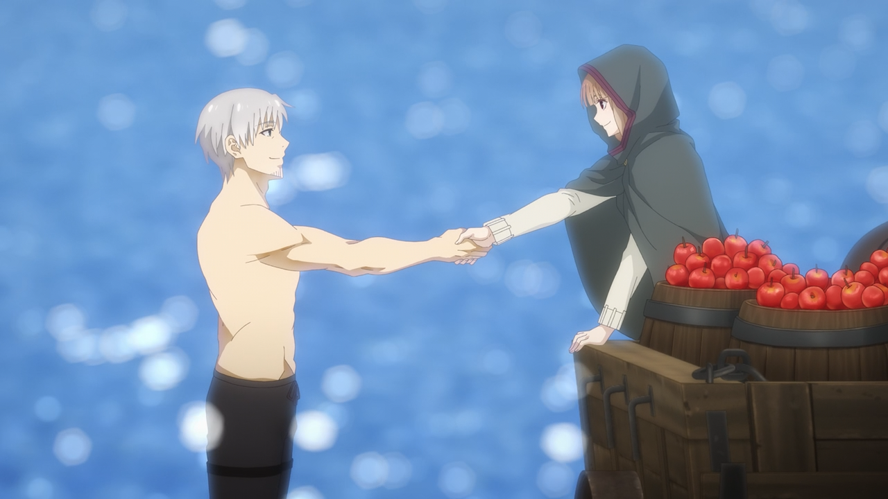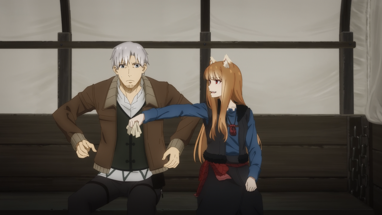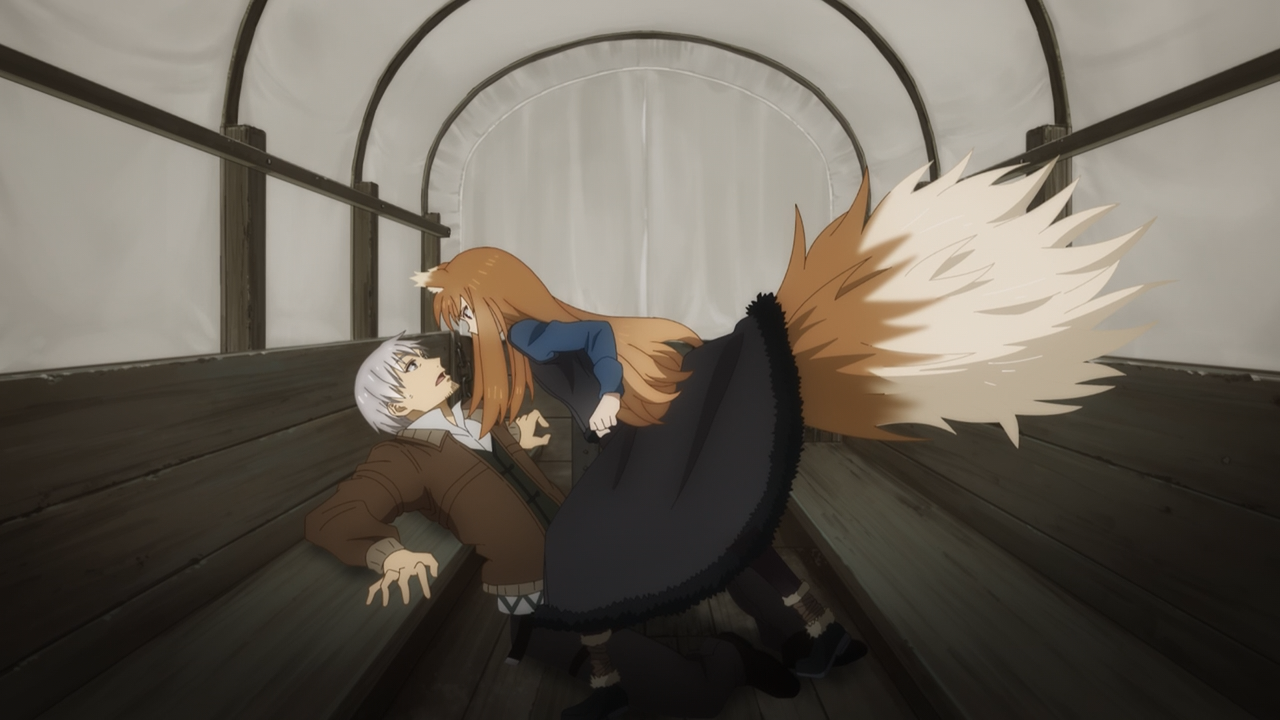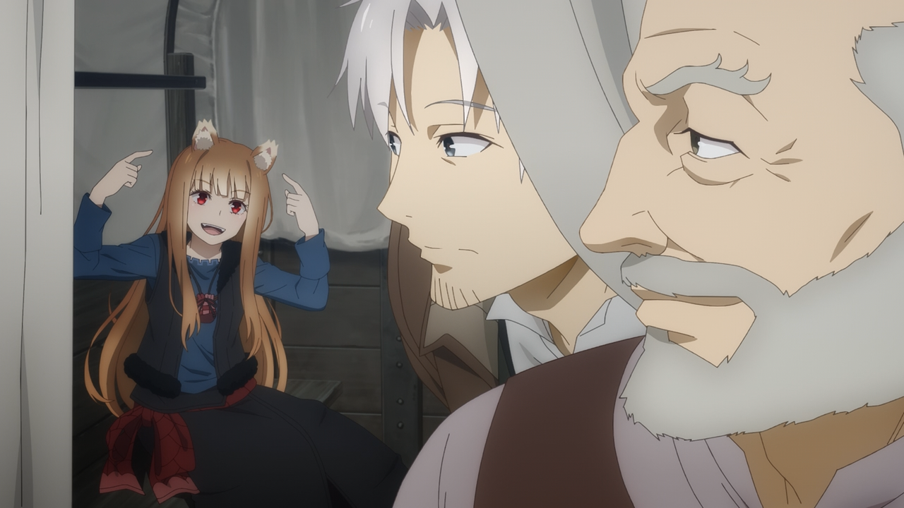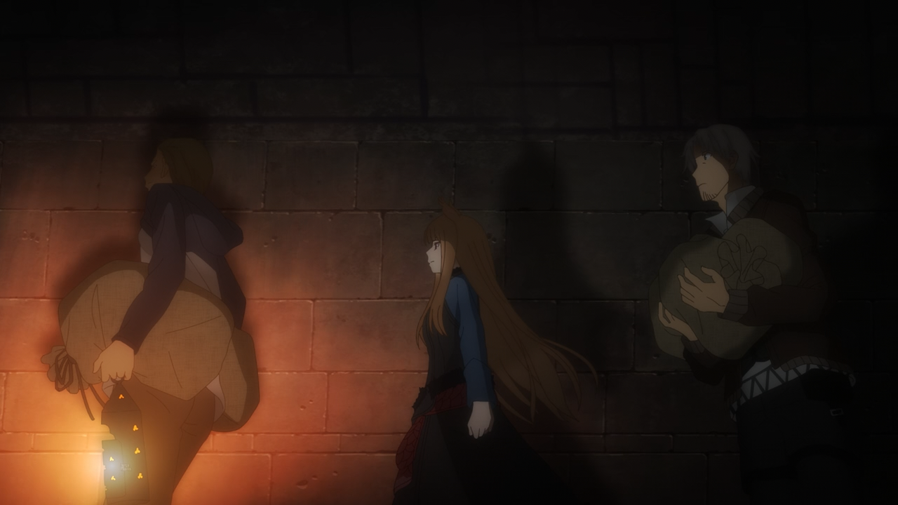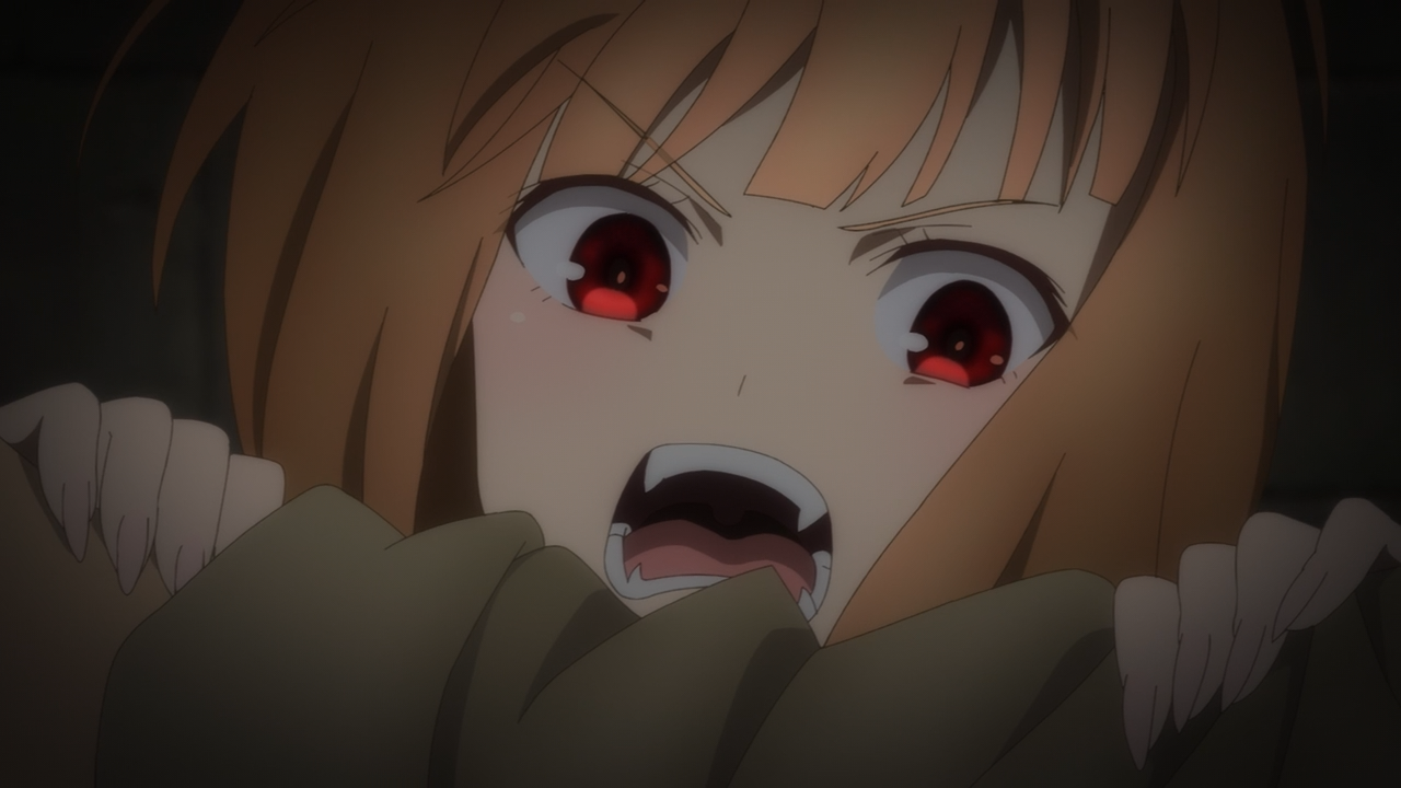 Overall the way the arc was handled was more or less the same (minus Yarei being replaced by an anime original character Chloe) as the original adaption. I enjoyed it. The new character designs took an episode or two to get used to but I’m glad they managed to strike a balance between showing the maturity of Holo’s character, as well as her cute side when she behaves childishly. I thought they handled the animation pretty nicely, though I did feel like they dipped a bit in this particular episode compared to the rest. Holo’s wolf form today did feel a bit inconsistent, but not so much it was immersion breaking– except for the one part, where her head just looked like a giant Shiba(Time Stamp: 12:00, SURELY I AM NOT THE ONLY ONE WHO THOUGHT THIS RIGHT?!), which was kind of funny and made me chuckle for all the wrong reasons. After-all Holo would be livid by such a comparison. So if you’re going to ask between this wolf form versus the one we saw in the original, which is better? Hands down the original adaption still takes the cake for that because she actually looked terrifying.