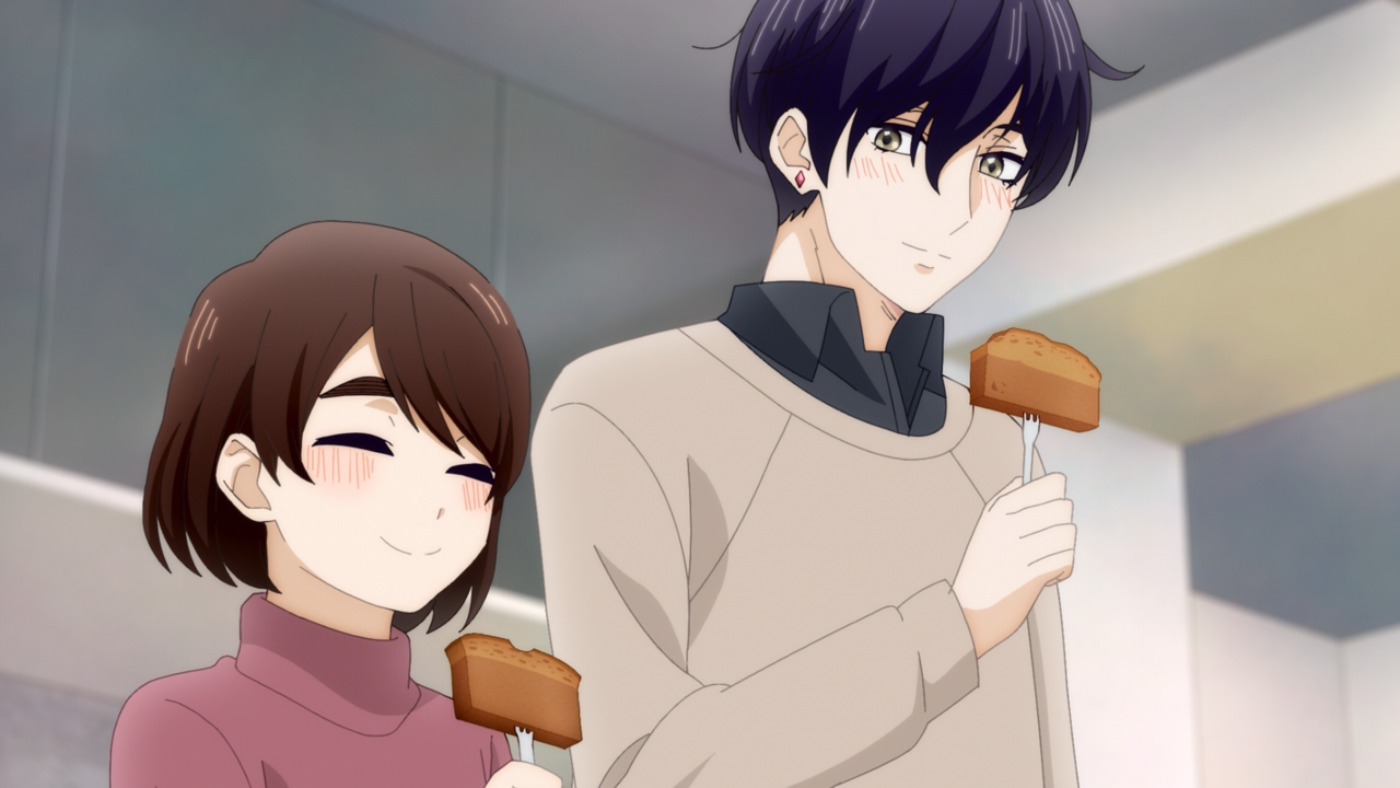 Apart from Hotaru being an absolute champion this episode, I really enjoyed seeing the two of them bake the chocolate cake together. I mean, what better way to spend valentines together than to bake a delicious cake? I think doing that activity is a lot more sweeter and memorable than just a date. But it was great of Hotaru to notice how Saki was staring excitedly at the valentines chocolate signage to get the idea to go on a date together for valentines. Even better that she decided to just go over to his place because considering Saki’s habits of never being late, him saying he’d need another hour or maybe longer is a good enough reason for Hotaru to feel the need to check up on him to be on the safe side of things! And it was so endearing to see how flustered and out of his element he was. Saki’s always striving to show his best sides, so it was refreshing to see him struggling for an exchange. I’d also like to make the point that he is exceptionally adorable with glasses and I think that actually makes him look better with short hair because his character designs doesn’t look as generic, if you know what I mean. I liked seeing this imperfect side of him, and I’m glad Hotaru got to see it too. It’s fun for her as well, as she got to see another side of him as well.