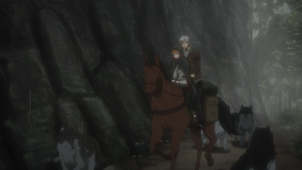 It’s time to smuggle gold. While the journey to Lamtra was relatively smooth for most part (apart from a jump scare in the night), the way back was anything but that. First off was the terrible weather. The downpour muddying the road causing them (and the flock carrying the gold) to move slower than they’d like. And second, that had to be the day they were being pursued by the wolves. But the truth of the matter, with Holo dealing with the wolves, they were much bigger problems: being betrayed by the Remerio Trading Company.