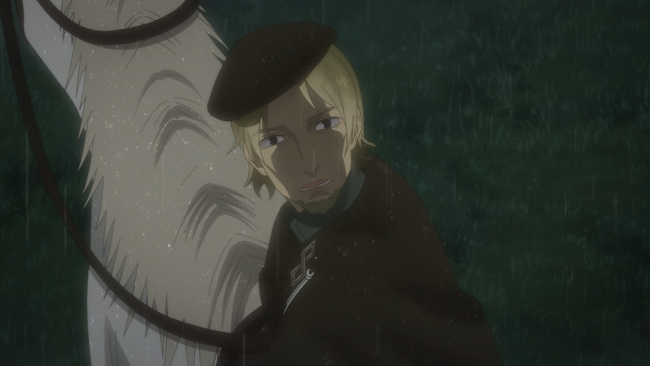 Unfortunately Remerio knew that they wouldn’t have enough gold for themselves if they were to share any of it with Lawrence, so they decided they would kill him and his companions. Holo at the time was dealing with the wolves (particularly with one young one of her own giant kind), and Nora had gone ahead with the sheep and Liebert. This left Lawrence vulnerable when Remerio Trading Company’s men came only to beat him up, took his horse, and left him for dead. While they went through the trouble to tie him up, fortunately they forgot to put out the fire, because that’s what Lawrence ultimately used to break free from the ropes. Either way, talk about being stuck feeling absolutely powerless in such situation…