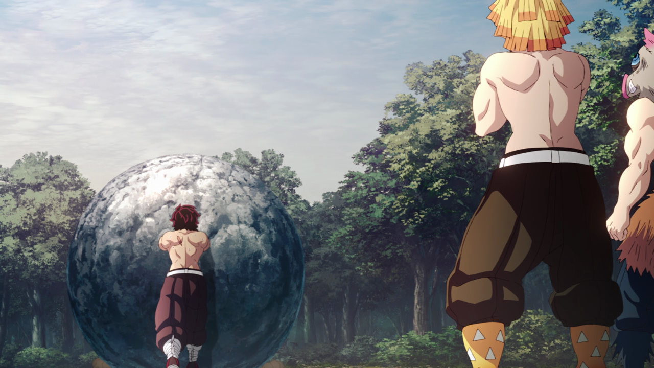 I think my favorite part of the episode had to be when Tanjiro and Genya were interacting. While I didn’t feel that much for him in the previous season, Genya has actually been growing on me this season. Mostly because he has graduated from being another perpetually angry rival character. He’s actually really pleasant now especially in his relationship with Tanjiro. They make really cute friends now and it’s honestly heartwarming to see how much Tanjiro has broken down his walls with his kindness and support. It almost seems like we’re finally seeing the Genya we saw back in his flashback now. The two get along so well now and while it was a quick turnaround, I feel like Genya can see just how much Tanjiro supports him in his endeavors and appreciates it. Especially in regards to his brother. Genya even goes as far as to offer Tanjiro some much needed advice on how to move the boulder. They bounce off each other really well and I’m glad that Genya just overall seems happier instead of snapping at every little thing like he used to. Looks like Tanjiro finally achieved the buddy-buddy classmate relationship he wanted with him XD. Their crows’ relationship is also pretty hilarious by just how hostile they are towards each other.