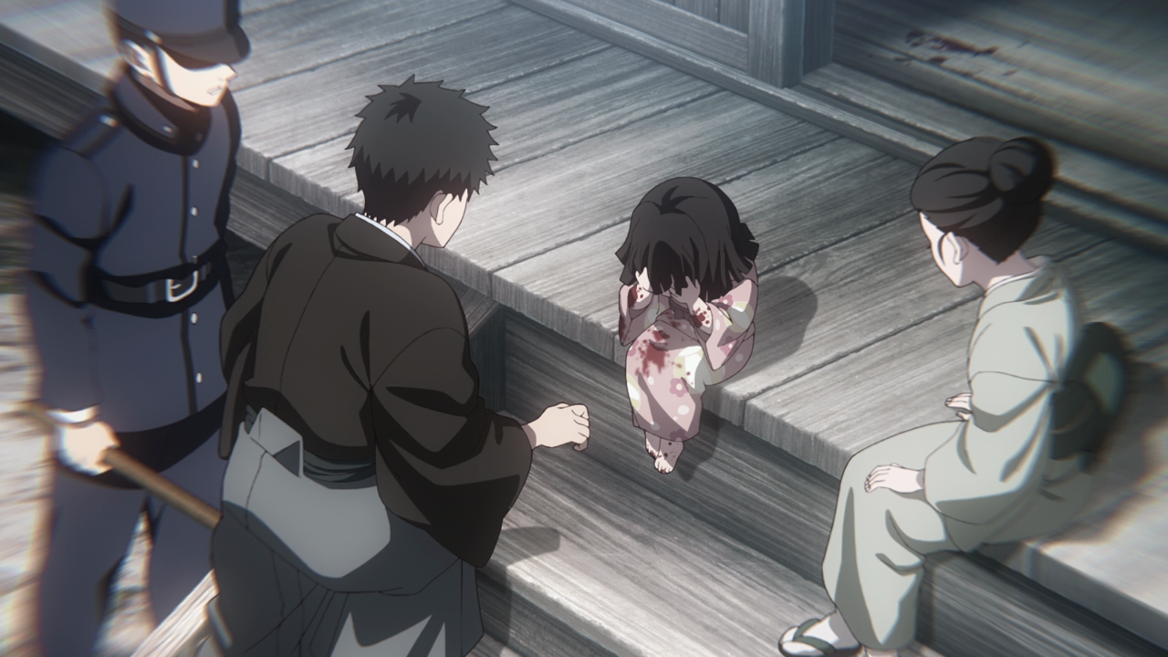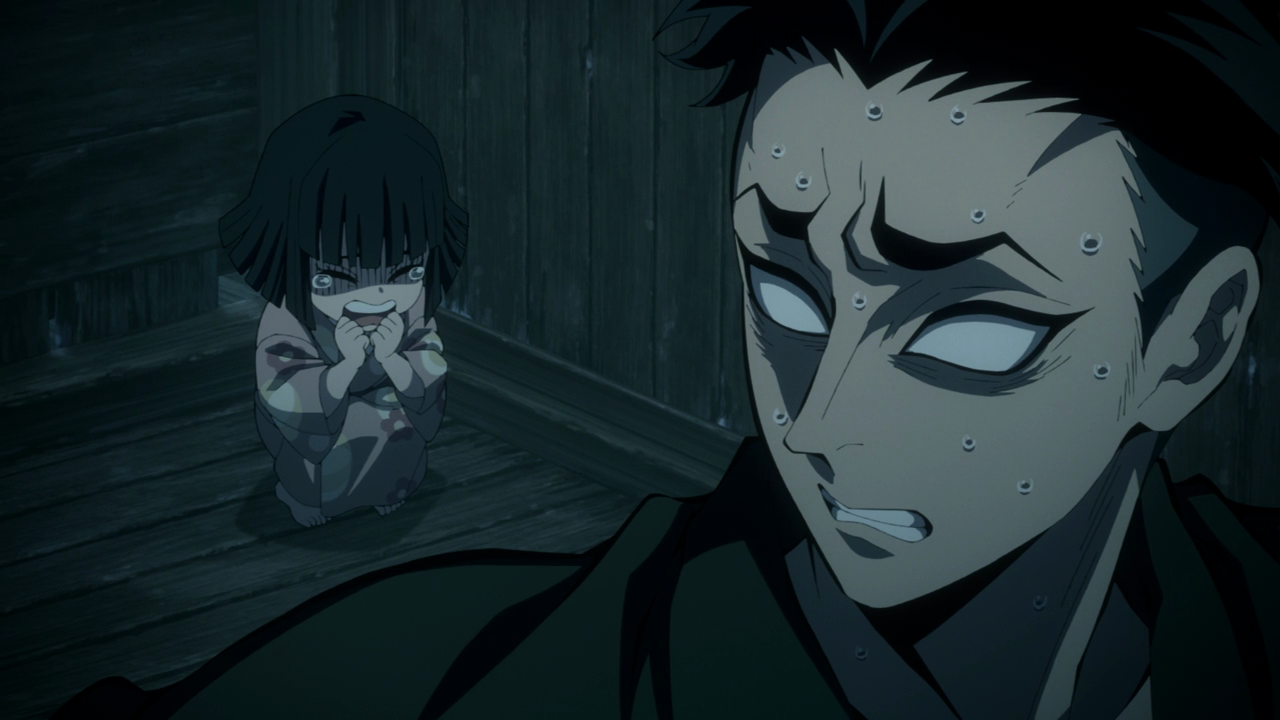 It’s so tragic because clearly, she was TRYING to describe the demon that had attacked them, but she was way too young to have experienced such horror so it’s not surprising that she couldn’t communicate clearly after being so shaken up. And because demons leave behind no traces of themselves when they die, it did absolutely nothing to show Gyomei in a good light considering he was covered in blood and surrounded by the corpses of all the other children. I’m actually pretty sad that Gyomei seems to harbor some disappointment towards Sayu for telling the others that “he” was the one who murdered the children and was only thinking of her own well being at the time. Even though she was just a traumatized child who couldn’t fully articulate what happened and most likely didn’t even mean to get him into trouble. You can’t expect someone, much less a freaking four year old, to relay information in a time of crisis or shock. The ONLY one at fault in this situation and should be held accountable for his actions is that kid that LEAD the demon to the others to eat just so he can save himself. Thankfully the master was able to save Gyomei before he got executed, but gosh… what that kid did ruined so many lives in one night.