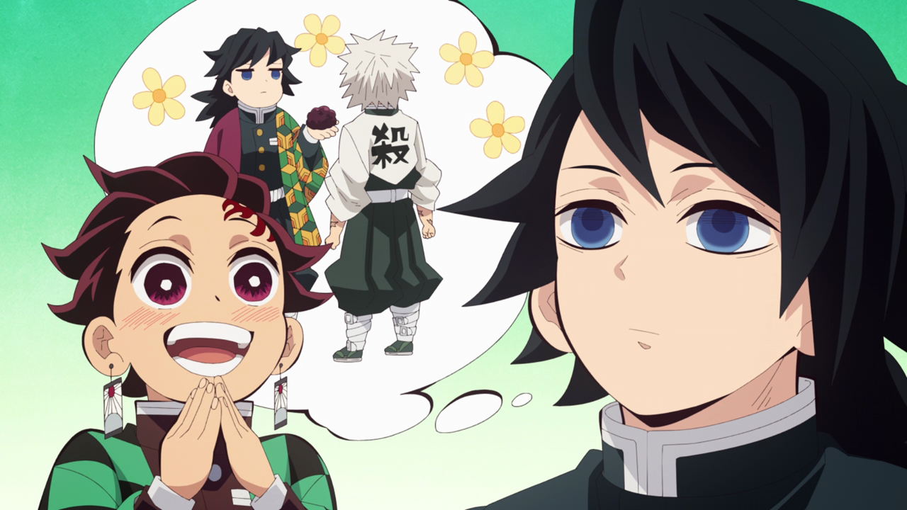 We shift gears a bit when Tanjiro goes over to Giyu’s place for his next training (to which we don’t even know what Giyu’s training even entails yet) only to find Giyu and Sanemi sparring. Clearly, Sanemi is still pretty salty about Giyu’s words of “not being like the other Hashira” as Giyu never explained to them what he actually meant by that. Though I do find it hilarious that despite Sanemi’s… personality issues, Giyu still wants to be friends with the guy. And him wanting to have a red bean mochi on his person just so he can give it to Sanemi is freaking hilarious. With how he is, I doubt Sanemi would accept it. The two really need to talk things out first before Giyu can be friends with him. Though it does seem like Giyu is actually trying to take steps in trying to get to know the other Hashiras more, even if it does feel a bit too abrupt for my liking. Good for him I suppose. And as much as he claims he isn’t even on the other Hashiras’ levels, the fact he tied with Sanemi in their sparring session speaks volumes of his power level. Guy really needs to learn to realize how strong he actually is.