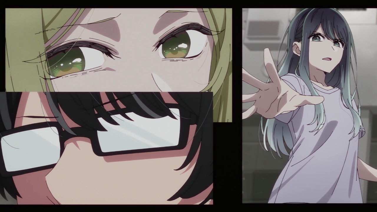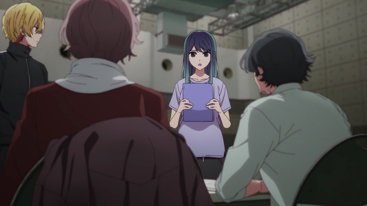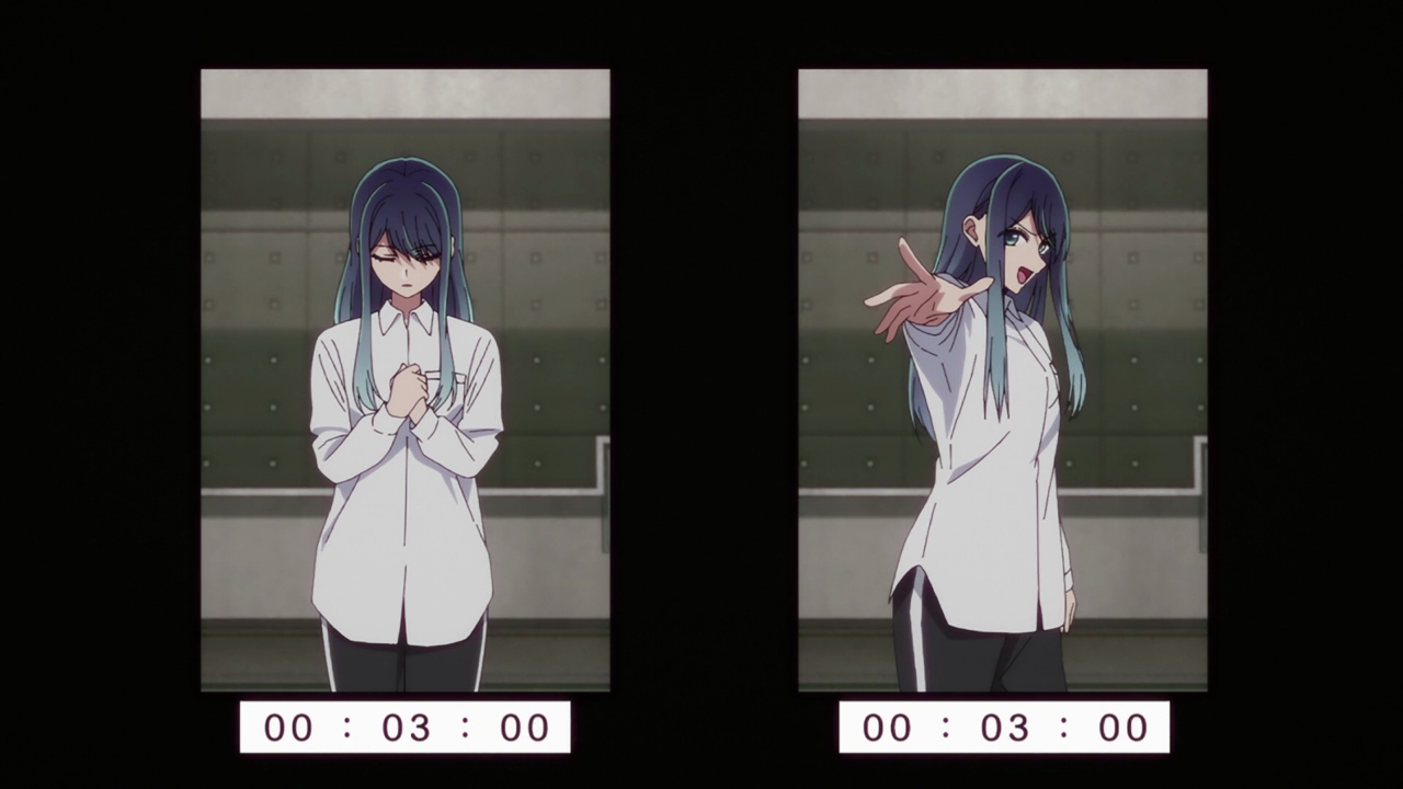 We jump right into the preparations for the stage play and already, we are treated to a spectacle. I absolutely loved the symbolism of those who are gifted and passionate about acting where they are shown in a vibrant color while the rest are grayed out. And the detail on how Kana does her acting jobs, at first she’s shining, but then purposefully dulls herself to match those around her. Only for Himekawa to douse her with the reality that she CAN act her heart out because he will be able to match her blow for blow. And man, that shot of Kana getting hit with color while half of her is the character… UGH IT WAS SO GOOD. Especially with how the two of them were shining so brightly while dousing the room with color. And man, I loved hearing unhinged Kana lol. The fact that someone is able to allow her to go all out after so long must feel so revitalizing to her. Even Aqua seemed awed by Himekawa’s performance if only for a moment. That whole sequence was just so good with the cinematography, the voice acting, the colors… I just keep replaying it because it was so good.